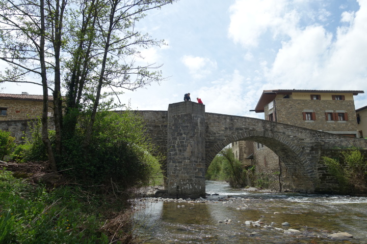 少し遅めの出発で小さな村を通過しながら峠を2つ(メスキリッツ峠、エロー峠)越えました。昨日のピレネー越えの疲れが多少残っているので、距離はあまり長くないがそれなりの疲労感。 段々人が出てきて、今日の中で最大の村のズヒリでは宿は満杯で溢れてしまった様子。ここにはPuente de la Rabia(狂犬病の橋)があります。中世、狂犬病にかかった家畜はこの橋を3回渡ると治るといわれていたらしい。ここで昼食のビール、2杯飲んだら残りの6km弱はほろ酔い気分。