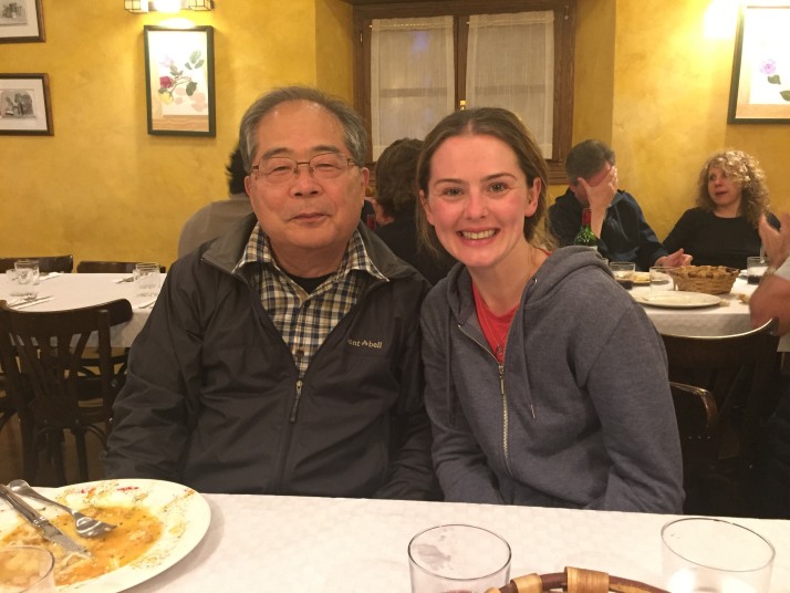 ララソアーニャの橋は、Puente de los Bandidos(盗賊橋)。昔、この辺りは追剥ぎが良く出たのでこの名、でも、今ではアルベルゲもある環境良好な村になっています。 本日のアルベルゲ(巡礼宿)サン・ニコラスは大変きれい。6人部屋で男3、女3の組合せ。最初の宿泊地オリソンで一緒だった人が4人もいて和気あいあいと。同室のマイクに日本語で名前を書いてあげました。 夕食は村で唯一のレストランで。アイルランドから来た家族と一緒に食事をしました。父と娘と婚約者でカミーノを歩いている。ラグビーワールド杯、旅の事、家族の事など楽しく話しました。 |