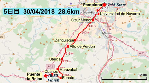| 5日目 2018.04.30(月) Pamplona ⇒ Puente la Reina 28.6km |