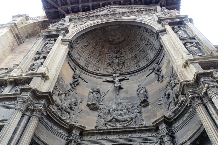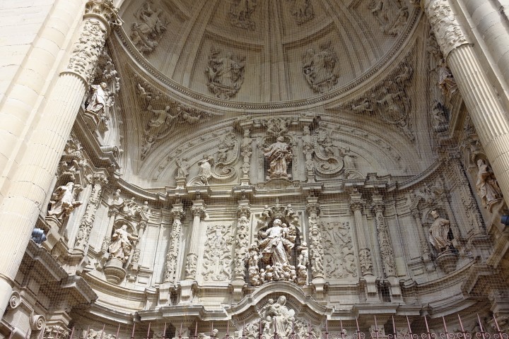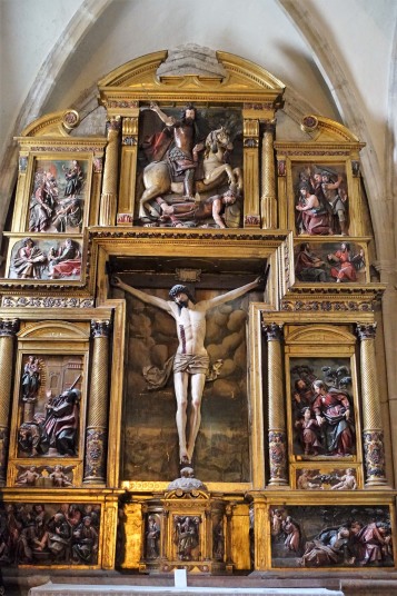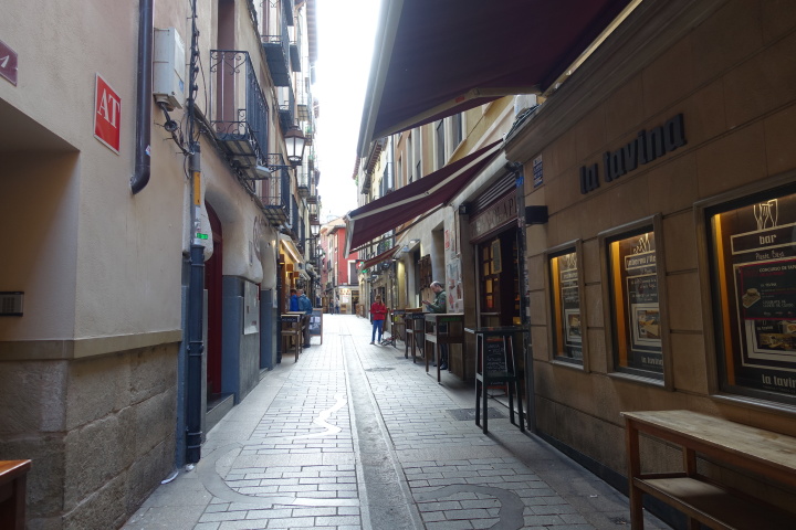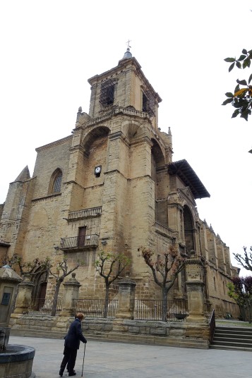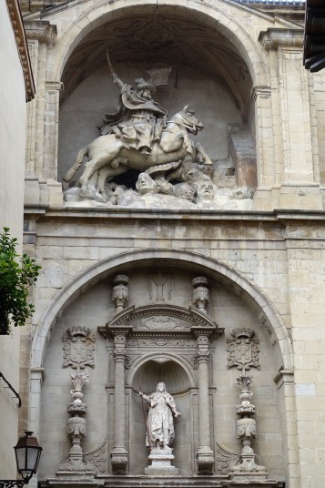 ログローニョはリオハの州都、流石に大きい町。大聖堂は15世紀に建立、18世紀に改築され、双塔も内部の祭壇バロック様式。聖バルトロメオ教会は13世紀の初期ゴシック様式で、タンパンにはたくさんの彫刻があります。サンティアゴ・エル・レアル教会の入口正面上部には白馬にまたがった聖ヤコブ像の彫刻があります。844年に起こったクラビホの戦いで白馬に跨り剣を振りかざすサンティアゴが現れキリスト教徒を鼓舞したという伝説によるもの。この先、この構図の彫刻や絵画を多く見ることになります。