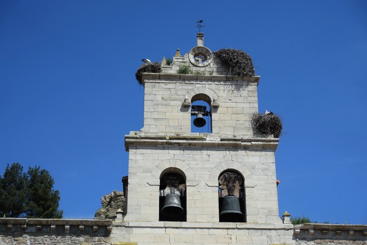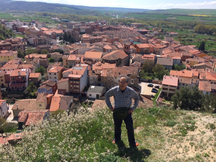 ベロラドはこの辺りでは比較的大きな村、巡礼者相手の宿やバルが多くあります。サンタ・マリア教会の塔にはコウノトリの巣、中にはモーロ人殺しと巡礼姿のサンティアゴ像があります。ベロラド城跡が高台にあり、登ると町を一望出来ます。丁度、一緒になったオランダの女の子に写真を撮ってもらいました。