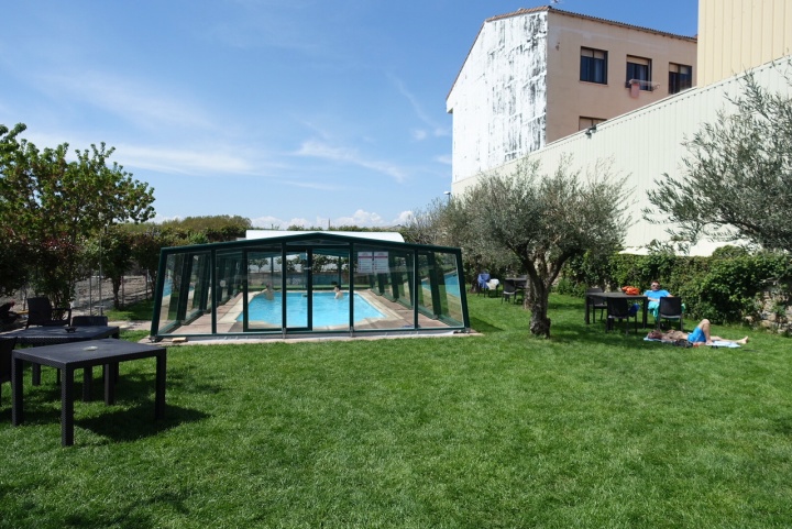 宿では暑かったのでプールに入っている人もいます。 |