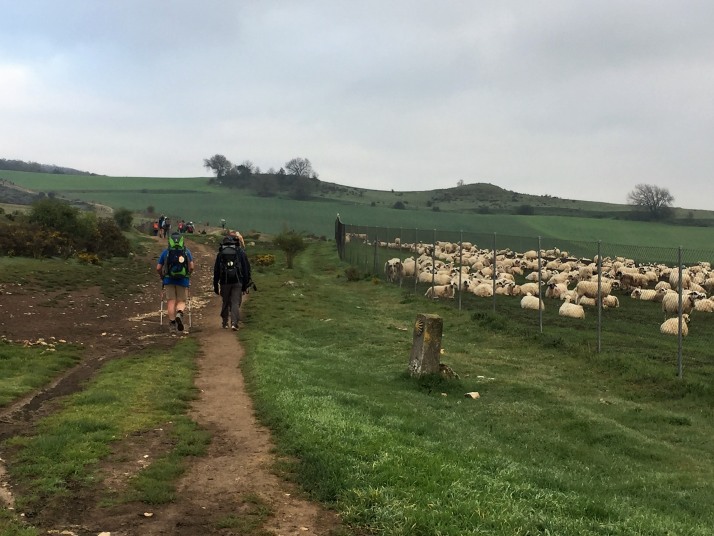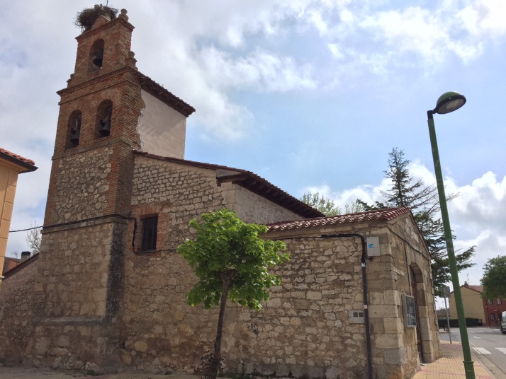 薄曇りの中をスタート、アタプエルカの村で昨日夕食を共にしたドイツのユルゲンさんと一緒に朝食。今日も私と同じホテルに泊まるらしい。ここから登りになり1,080mの峠の頂上に十字架があります。その後は、粘土質の泥が靴にへばり付く道や草の道を下り、Orbaneja(オルバネハ)の村で休憩、トレドから来た陽気なポラがいました。