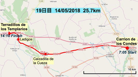 | 19日目 2018.05.14(月) Carrion de los Condes ⇒ Terradillos de los Templarios 25.7km |