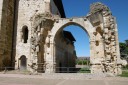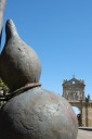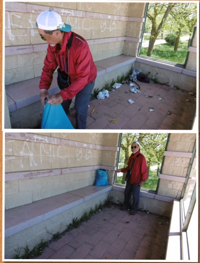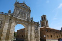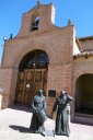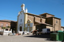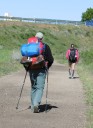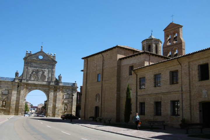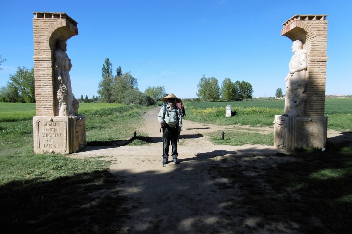 Valderaduey)を渡るとバレンシア県からレオン県に入ります。川のほとりに12世紀に建てられた橋の聖母教会(Ermita de la Virgen del Puente)があり、その前にはサアグーンの町の入口を示す門が聳えていました。 サアグーンはレンガ造りの教会が並ぶクリュニー修道会の町で、レンガの家が並んでいます。日本でいうと深谷市のようなところ。特にサン・ロレンソ教会やサン・ティルソ教会が代表的ですが、どうもサン・ティルソ教会の写真は撮り忘れたようです。町の出口には、一時、スペインで強力な力を持ったサン・ファクンド修道院(現在は旧跡)付属の門であるサン・ベニート門がありました。サアグーンはカミーノの中間地点でもあります。 その後も国道沿いの真っ直ぐな道を進み、途中羊飼いに会ったり、休憩所の掃除をしながらBercianos del Real Camino に到着です。 今日のアルベルゲは公営で料金は寄付制。夕食は宿泊者50人が一堂に会して、陽気なホスピタレーロが昔のユースホステルのへルパーの様に場を盛り上げ、笑いを誘いながらの楽しい食事。最後は、Mr.Gomitoryがポイ捨て禁止の啓蒙をしてお開きになりました。 このホスピタレーロは数日後カミーノに出発して、この先何回か顔を合わすことになります。 |