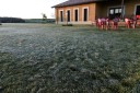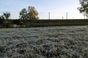 朝の気温は3度、アルベルゲの庭には霜が降りていました。ここの村Terradillos de los Templariosはテンプル騎士団の支配下にあったといいます。サン・ペドロ教会が朝焼けに染まっていました。最初の村Moratinos モラティノスには丘の斜面に横穴貯蔵庫があり食料やワインを貯蔵しているとのこと。サン・トーマス教会の木々には村のおばあちゃんが編んだ織物で覆われています。 サン・ニコラスの村を過ぎると道はセンダに変わり、バルデラドゥエイ川(Rio