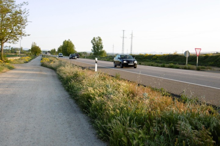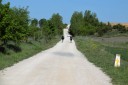 今日はレオンまで20km弱の緩めのコース。幹線道路に近い小道を歩くと車の多さにびっくり。これまで日に10台位しか見なかったのが、今日は1分間に10台は来ます。やはり大都市レオンに近づいた為か。天候も日中は快晴で久し振りに暑さを感じました。 最初の村Villamoros ビジャモロス で開店早々のバルに入り朝食。ここの教会の鐘楼にコウノトリの巣があります。暫く進んでポルマ川を渡るとPuente de Villarente ビジャレンテ橋に着きます。ローマ時代の橋で何回か修復を繰り返し、直近の修復は1833年。20世紀に拡張されて20のアーチ、約200mの巨大な橋です。近づくと歴史の重みを感じます。 ここから少しづつ緩やかな上り坂になり、Arcahueja アルカウエハ、Valdelafuente バルデラフエンテの村を通って、10時35分にAlto del