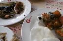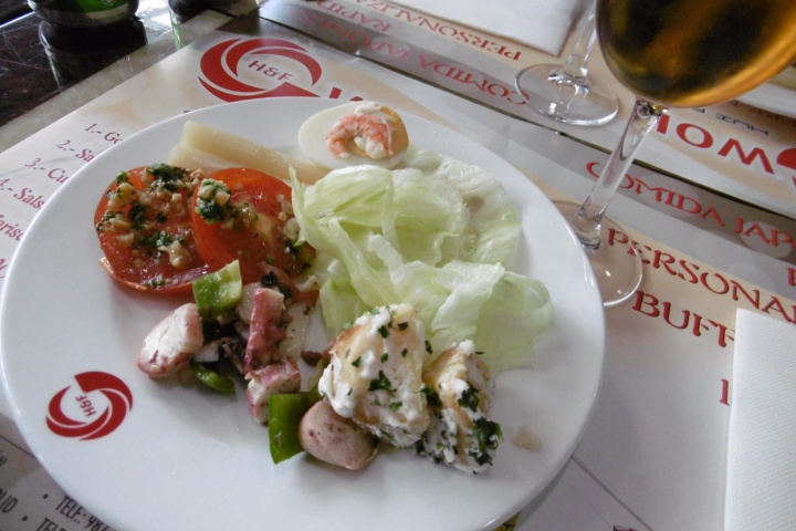 昼食はレオン郊外にある中華バイキング。寿司に似た料理や味がわかる料理が並んでいるので安心です。海鮮の具材を選んで持っていくと焼いてくれます、満腹の昼食でした。その後はやる事もなく、宿に戻ってシエスタです。部屋に戻ると女性が2人います。あれ、ひょっとすると? その後、男性が1人来てあっさり期待は裏切られました。 夜は昨日見つけた日本料理の店で。地酒や焼酎など日本の酒が並んでいます。久し振りに天狗舞を飲みました。スタッフに天狗舞の酒蔵の写真を見せると喜ばれました。スタッフは現地の人ですが出てくる料理は意外ときれい、味もいいです。締めに抹茶を点ててもらいました。 外に出ると、今夜は祭りのよう、バグパイプの演奏が近くでありました。こんな所にもケルト文化の影響が分かります。 |