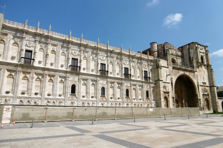 前日ホテル泊で朝はゆっくり過ごしてから出発。先ずは今日の宿へ。朝8時から受け入れているアルベルゲに9時に入りました。4人部屋ですが、当然一番乗りです。 散策の最初はサン・イシドロ教会へ。11世紀のロマネスク様式建築の代表と言われ、特に礼拝堂には素晴らしいフレスコ画がありますが、学芸員の説明がスペイン語なので今一つ内容の理解が?? フレスコ画は写真撮影不可でした。