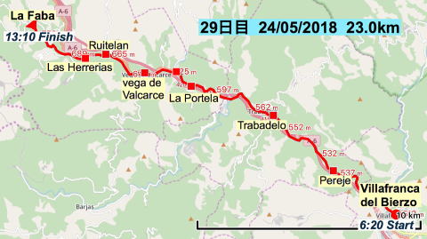 | 29日目 2018.05.24(木) Villafranca del Bierzo ⇒ La Faba 23.0km |