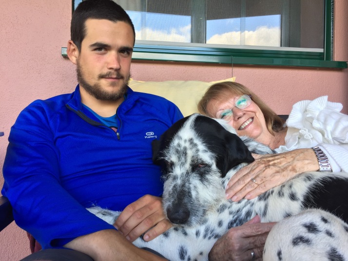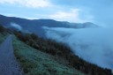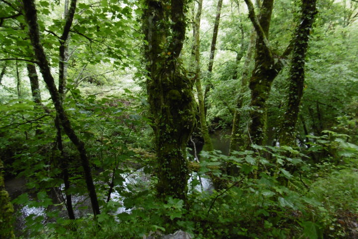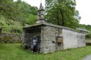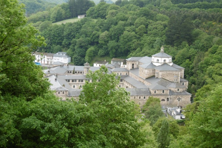 夜明け迄雨が降って朝は濃い霧、今にも降りそうな様子だったので完全雨装備で出発。最初は標高1,200mから670mまで一気に下り、その後は小刻みにアップダウンをくり返す道。天気は降りそうで降らず、最後は青空も見せていました。 今日訪れたサモス修道院はスペイン最古、西欧でも最古を競うベネディクト派修道院で5-6世紀建造といい、その後何回か再建を繰り返しています。1951年の火災で焼失した壁画を再生して鮮やかに蘇っていました。約1時間スペイン語と英語による説明を聞きながら見学しました。ここで、セビージャから来たフラメンコのシンガーという3人組に会い冗談を言いながらこの先も一緒に歩きました。これからも何回か会うことになります。 宿泊はサリアの手前3kmのSan Mamedにあるアルベルゲ。人懐っこい大きな犬がいたりして、なんかのんびりしました。夕食は宿泊者全員でテーブルを囲んで食べますが、東洋人は一人。 明日からいよいよ100km歩くと巡礼証明者をもらえるというサリアに入ります。巡礼者も増える事でしょう。 |