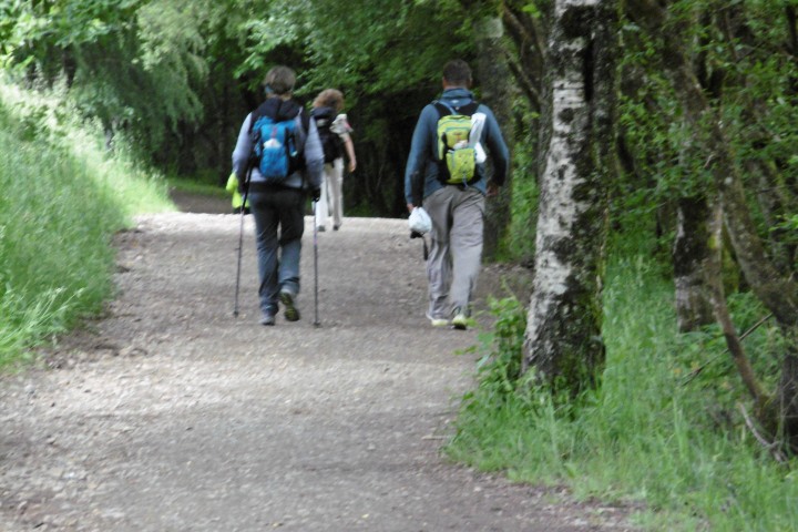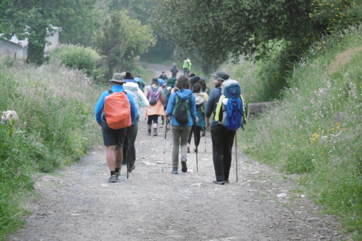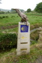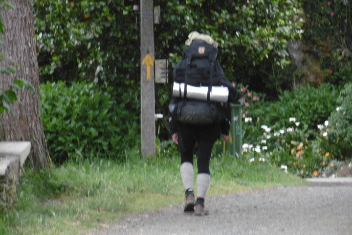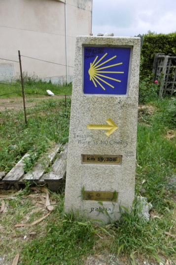 今日は距離も短いのでゆっくりスタート。曇り空で歩き易いけど、ガリシアに入ってずっとこんな肌寒い天気、なかなか青空を見せてくれません。歩いて直ぐに団体の一群に遭遇、荷物はトランスポートして軽装な人が多いようです。立派な杖を作って売っているおじさんがいましたが、こんな立派なものを買う人がいるのだろうか。殆どの人は今風のトレッキングポールを持っています。 途中、思いがけず産まれたばかりの子牛を見ました。人だかりがするので行ってみると、野原で自然分娩した子牛を立たせようと母牛が一生懸命指導している様子がいじらしい。 重い荷物を背負った女性に追い抜かれました。腰の入った惚れ惚れするような歩き方、特に山道に入るとどんどんスピードを増し追い抜いて行く。そのため写真もピンボケです。 Mr.Gomitory2号も発見しました。夫婦の巡礼者で荷物は軽め。主人がゴミ袋を持ち、ゴミを拾いながら歩いています。カミーノ・クリーン運動もじわじわ浸透しているようです。 マドリードから来た二人組と会い記念写真、この後バルで再会、ビールをご馳走になりました。 早目に着いたので昼は巡礼定食にしました。これまで昼食はセルベッサ・グランデ中心に誤魔化してきたので久し振りにガッツリと。ボリュームがあり過ぎて満腹に、帰りにスーパーで食材とビールを仕入れて夕食は簡単にする事にしました。 |
