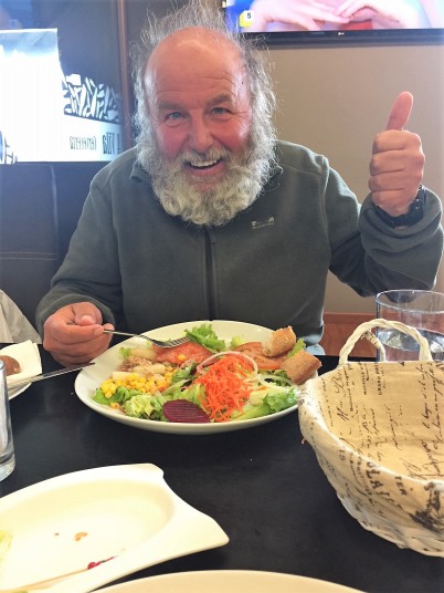 夕食はアラカルトで、でも、大量のポテトの上のコロッケには閉口。ポルトガルの最南端からポルトの道を歩いて来たイタリア人と偶々同席。イタリア語、日本語、時々いい加減英語で会話しながらの食事でした。 |