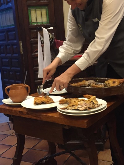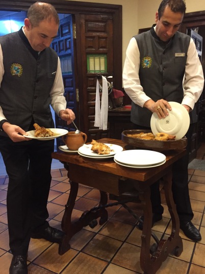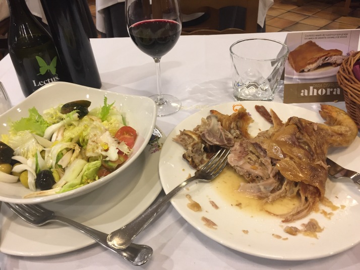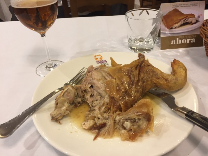 旅の最終日はセゴビアです。 苦労してセゴビアに到着、ここも原っぱにある駅でタクシーでホテルへ。先ずはホテル前の大聖堂、1525年から建設が始まった後期ゴシックスタイルの建造物で、建設には50年余りのも年月がかかったとか。カテドラルの貴婦人と呼ばれるだけあってどこか気品が漂います。 次に何はともあれアルカサル。城の前には後にスペイン戦争へと発展する1808年5月2日の英雄である砲兵隊長ルイス・ダオイスとペドロ・ベラルデの像があります。又、カスティージャ女王イザベルとアラゴン王フェルナンドが居を構えたこともあるといいます。ここはディズニーの白雪姫のお城のモデルになったということで、それらしき写真を撮るためにちょっと頑張りました。 セゴビアといえばコチニーリョ(子豚の丸焼き)、当初予定していた店は到着が遅かった事もあり閉店時間に。ホテルのお兄ちゃんに聞いて入ったJose Mariaがなかなか良い店。思いっきりコチニーリョを食しました。明日の午前中にセゴビアの観光名所 セゴビア水道橋を見て帰国の途につきます。 |
