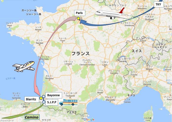 エールフランスのストライキで最後まで気を揉んだ夜行便AF0293便は何とか出発して翌朝4時半過ぎにパリに到着。すぐにローカル線を乗り継いて小さな空港のビアリッツへ、小雨が降っていたので菅笠を被っていたら、早速四国へ行ったことがあると声をかけられました。ここからバスでバイヨンヌまで行き、ここで一泊しました。