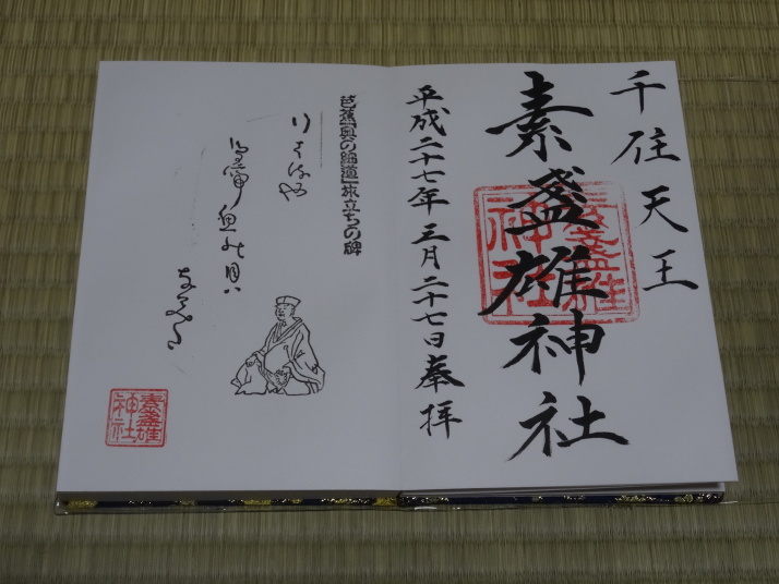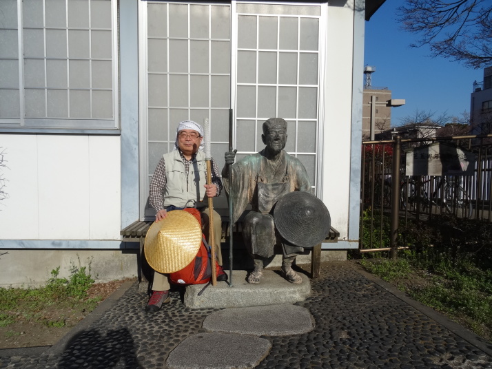 深川の採茶庵から旅立ちです。後輩の邑口杉風が深川から千住まで見送ってくれるという事で千住までは同行二人。採茶庵を出発して直ぐ芭蕉稲荷神社(芭蕉庵跡)で旅の安全を祈願していると、やはり芭蕉に興味のありそうな見知らぬ方から「お気をつけて」と激励を受けました。隅田川沿いを進んでいくと、散歩している保育園児からも熱い視線?。先ずは南千住駅前の芭蕉像へ。今年3月4日に建立されたばかりで、以前からあった「芭蕉は船で隅田川を北上し千住の地で陸に上がったが、北岸(北千住)なのか対岸(南千住)なのか」の論争が更に激しくなりそうです。素盞雄神社には「行く春や鳥啼き魚の目は泪」の矢立初めの句碑があり、旅立ちに相応しい御朱印をもらいました。 14時頃、毛長川を渡り東京都から埼玉県に入ります。草加宿に入ると、自転車に乗った小父さんから「奥の細道か?今日は3月27日だからな」と声を掛けられました。その先にある草加宿神明庵で休憩していると、この小父さんが再度来て草加煎餅をお接待してくれました。まるでお四国にいるような感じでした。草加松原には、曾良や芭蕉の像、矢立橋や百代橋があり、その間が松並木で綺麗に整備されています。2014年3月に「おくのほそ道の風景地 草加松原」として国指定の名勝になっています。蒲生の一里塚に来ると既に15時半を回っていました。先を急ぎましたが越谷で17時近くになってしまったので、ここから電車に切り替え春日部に行きました。 夜は宿の近くの粕壁うまいもの横丁にある「万や」へ。明日からの馬力を付けようと馬刺しなど注文して埼玉の銘酒神亀を楽しみました。 |