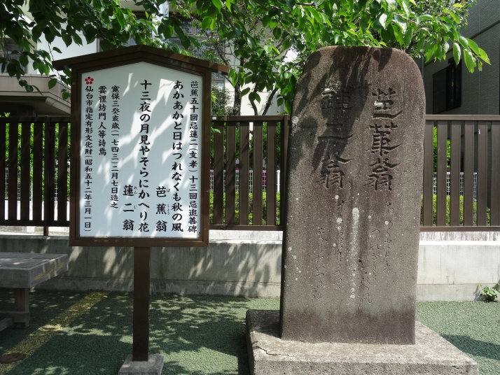 今日は仙台在住の西牧曾良と一緒に芭蕉が4日間で回った仙台の訪問先を歩きました。先ずは芭蕉の辻。正式には「札の辻」で仙台城下を東西に貫く大手筋と奥州街道の交差する場所。松尾芭蕉とは関係なく、「そこに芭蕉樹があったため」とか「政宗が重く用いた芭蕉という虚無僧が住んでいたから」などと説明されています。広瀬川を渡り少し行くと、日本フィギアスケート発祥の地の「五色沼」があります。この先から山道に入り青葉城に向います。今日は快晴で伊達正宗公も綺麗に撮れました。近くにある昭忠碑(西南戦争・日清戦争等戦没者慰霊碑、明治35年建立)の鵄のブロンズ像は東日本大震災で塔の上から落下し、その右翼と尾翼が塔の脇に保存されていました。平成26年度から保存修理事業が始まり、平成28年度には鵄の再設置工事が行われるそうです。 青葉城から下り、広大な東北大学のキャンパスを抜けながら亀岡八幡宮に行きます。360段の石段を登りやっと参拝が出来ました。杜の都仙台を代表する定禅寺通りを進んで東照宮へ向かいます。定禅寺通りでは明日から行われる仙台・青葉まつり(5/16〜17)の準備で大賑わいでした。又、毎年9月には定禅寺ストリートジャズフェスティバルが行われ、今日一緒に歩いている曾良も現役ロックンローラーとして何回か出場しています。東照宮では重文の石燈籠が迎えます。37基中、承応3年(1654)のものが31基、延宝8年(1680)が2基、天和2年(1682)が4基となっており、芭蕉が訪れた時に全てあったということです。重厚な随身門や唐門、本殿も重文指定になっています。 蕎麦屋で昼食後、榴ヶ岡天満宮へ。境内には芭蕉を始め多数の句碑があります。又、ここの御朱印は両開きで華やかなものでした。更に進んで陸奥国分寺跡に建つ薬師堂へ。茅葺屋根の仁王門、重文指定の薬師堂は趣があります。ここから先は東光寺を目指して北へ。2時間程歩いて七北田川の今市橋を渡ると正面が東光寺、山門の手前に「おくのほそ道」碑があります。東光寺付近の道は仙台の俳人大淀三千風が天和2年(1682)に出した撰集「松島眺望集」により「おくの細道」として全国的に知られるところとなりました。「此辺、浮島、野中の清水、沖の石、奥の細道、轟の橋などいふ処あり。」( 松島眺望集巻之下)。芭蕉はこの名前が心に残っていたのでしょう。おくのほそ道に『かの画図にまかせてたどり行ば、おくの細道の山際に十符の菅有。今も年々十符の菅菰を調て国守に献ずと云り』と記しています。さらに、十符の菅を求めて細い道を行きました。十符の菅があったと言われている青い屋根の家の前に行きましたが今は何もありません。隣の家の方に聞くと「昔はあったが、以前に仙台市で刈り取ったようだ」と教えてくれました。スマホで調べると岩切市民センターに十符の菅が植えられていることが判り、1q半ほど戻って市民センターへ行きました。 これで今日の行程は終了、岩切駅から仙台に戻って反省会。もう一人の仙台住人、松沢曽良が加わって楽しい宴会になりました。美味い焼鳥屋で川敬酒造「橘屋」から栗原・荻の鶴酒造「荻の鶴」へ。冷し中華発祥の店「龍亭」で〆の冷し中華を食して終了となりました。 |