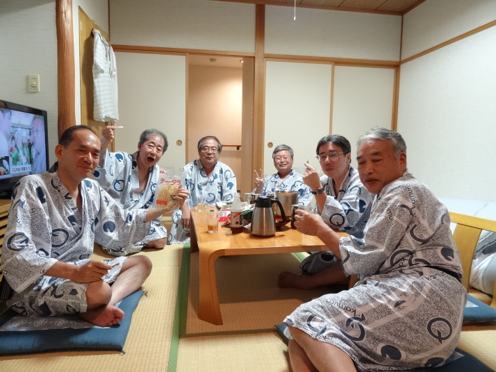学生時代の仲間6人で出羽三山合宿を実施しました。初日は仙台駅を10時に出発、秋保温泉を経て12時過ぎに大きな湯殿山神社大鳥居がある参籠所に到着、そこから30分歩いて湯殿山神社本宮に着きました。出羽三山の奥宮といわれる湯殿山神社本宮は昔から「語るなかれ」「聞くなかれ」の修験道の霊地で、写真撮影禁止です。 御神体は茶褐色の大きな岩。先ず入口で裸足になってお祓いを受けます。そして御神体を参拝、更にお湯が流れる御神体を登って行場である御滝神社に向かって参拝し、最後に御神湯(足湯)に浸かって全ての参拝が終了します。これほど神秘的な神社の参拝は初めての経験です。 その後は「ななかまど亭」で蕎麦の昼食。ボリューム、味ともに申し分なく大満足でした。 |