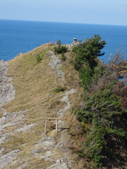 今日の行程は、「大山より三瀬へ三里十六丁、三瀬より温海へ三リ半。」(曽良日記)と同じです。 三瀬の町並を過ぎて笠取峠へ向かう遊歩道に入っていくと、遊歩道の崩落箇所を調査している二人組に会って暫く雑談。この先の展望台から鳥海山が綺麗に見えると教えてくれました。更に進んで東屋のある展望台に着くと、鳥海山の絶景が飛び込んできました。暫くここで日本海と鳥海山に見入っていました。この先の小波渡、堅苔沢の景色について、曽良日記では「小波渡・大波渡・潟苔沢ノ辺ニ鬼かけ橋・立岩、色々ノ岩組景地有。」とあり、同じく景色を楽しんだ事が伺えます。 立岩、鬼かけ橋(石碑)、塩俵岩など面白い岩が有りました。塩俵岩には芭蕉句碑「あつ美山や吹浦かけてゆふ涼み」が建っています。 |