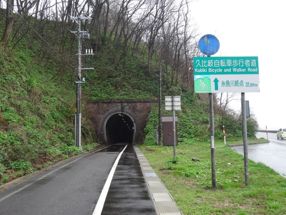 宿7:30〜五智国分寺9:10〜久比岐自転車歩行者道入口(郷津)10:30〜名立13:30〜能生17:10 |