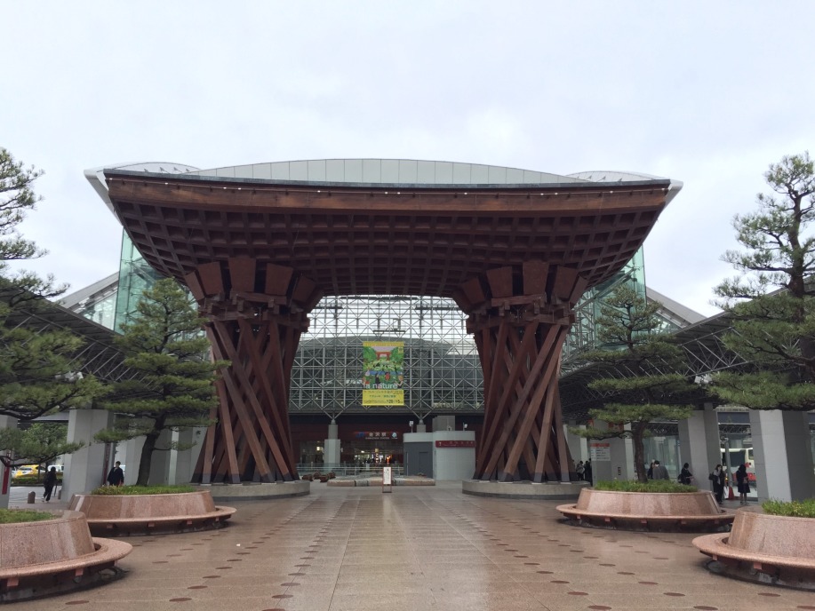 雨の金沢駅正面は人影がまばら。観光客が来るのはこれかららしい。