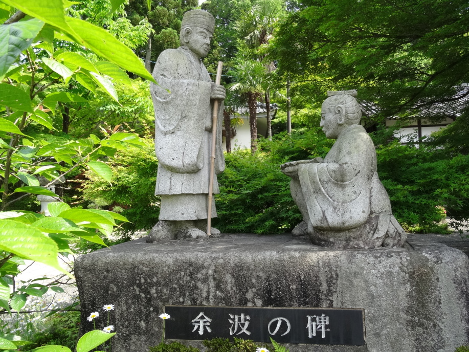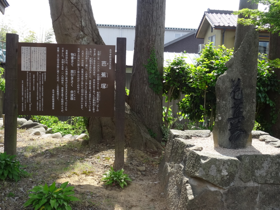 芦原温泉から長閑な田園地帯を進み、北陸本線を越えて天満神社で小休止。更に進むと田畑の向こうに丸岡城が見えます。遮るものが無いので結果的に3q手前から城が見えていたことになりました。丸岡城は天正3年(1575)築城、天守閣は昭和23年(1948)の地震で倒壊したものの昭和30年に倒壊材を元の通りに組み直して修復され、現存する12天守で最古のものとなっています。小ぶりながら荘厳で、急な階段にはロープが備え付けられています。隣の「そば処 一筆啓上」で昼食、先を急ぎます。 九頭竜川を渡り、永平寺町松岡に入って酒蔵2軒を訪問。「越前岬」の田邉酒造と「黒龍」の黒龍酒造。両家とも「大本山永平寺御用達」の看板を掲げています。黒龍酒造でついつい酒を注文してしまいました。その近くに天龍寺があります。元禄2年8月10日に芭蕉は、芭蕉を慕って金沢からついてきた立花北枝と共にこの寺で一泊し、翌日朝、北枝と別れます。その際詠んだ句が「物書きて扇引きさく余波かな」。境内には芭蕉塚と余波の碑がありました。ここで御朱印をお願いすると、暫く時間がかかると言われ、本堂にあげてくれてお茶のお接待、本堂には芭蕉ゆかりの品なども飾ってありました。 天龍寺でゆっくりした後はいよいよ永平寺に向けて出発。標高202mの越坂峠を越えますが、道元禅師はこの道を通って永平寺に入ったとの言い伝えがあり、当然芭蕉も通った道のはず。車も人も通らない道をただ一人で進みます。364号線と合流して先へ進むと、蕎麦屋やごま豆腐の店なども出てきて17時に永平寺門前に到着。参拝は明日にして門前の宿へ。 夕食時は明日訪問する福井の常山酒造の般若湯でお清めしました。 |