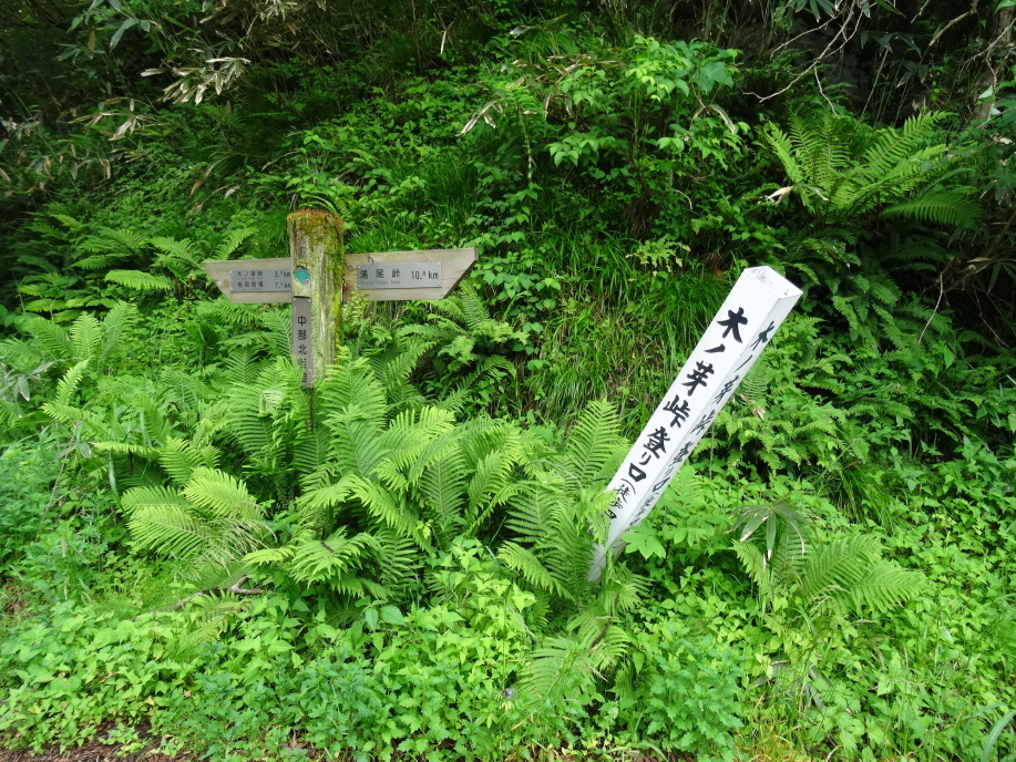 オヤジさんが昨日の朝7時頃、家の前の杉の木の上7,8mに熊がいたと言い出しました。犬が吠えたが俊敏な動きで逃げたそうです。クワバラクワバラ。これで犬が放し飼いされている訳が分りました。熊が出たら杖は捨てる、下だけでなく上にも注意しながら歩くなど注意をされて峠を下りました。