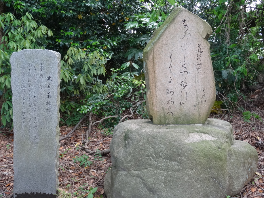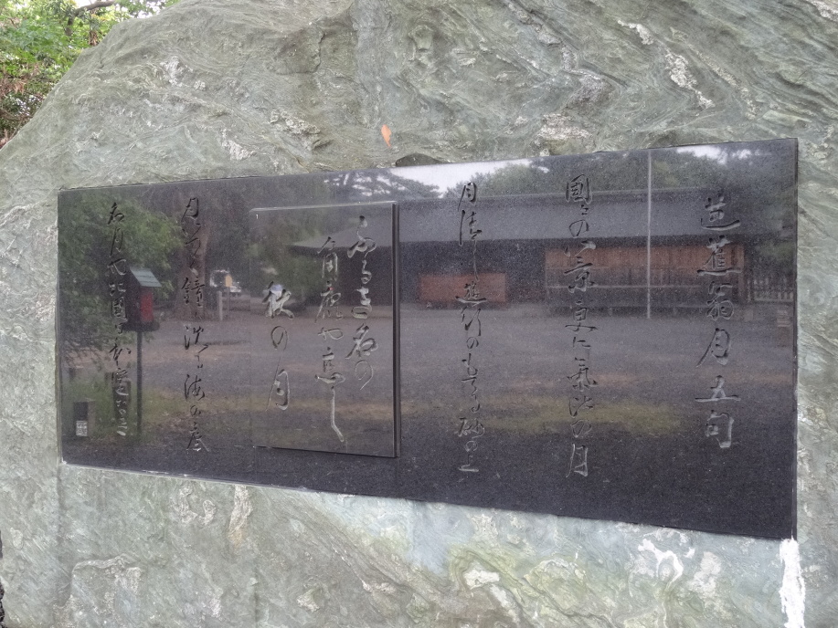 芭蕉像と「月清し遊行のもてる砂の上」の句碑、その脇に初案の「なみだしくや遊行のもてる砂の露」、又、芭蕉翁月五句として「国々の八景更に気比の月」「月清し遊行のもてる砂の上」「ふるき名の角鹿や恋し秋の月」「月いつく鐘は沈る海の底」「名月や北國日和定なき」が巨大な自然石に刻まれていました。