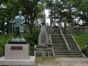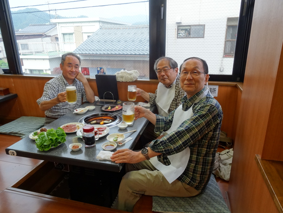 芭蕉は天屋玄流の船で飲めや歌えで色の浜に行きましたが、私は田保玄流車で観光を兼て色の浜まで送ってもらってスタートです。先ずは敦賀城跡の敦賀西小へ。敦賀城の中門は來迎寺の山門になっていました。続いて武田耕雲斎等の墓。昨日は新保の本陣跡を見ましたが今日は墓です。元治元年12月に幕府の軍門に下った耕雲斎一党は、当初は厚遇されたものの翌年2月に353名がこの場所で斬首されたとのこと。その後、色の浜まで送ってもらって一旦別れました。 色の浜は「ますほの小貝」で有名。小さな浜で赤く小さいますほの小貝を探しましたが見つかりませんでした。本隆寺開山堂には「寂しさや須磨にかちたる濱の秋」の句碑と、西行の「潮染むるますほの小貝拾ふとて色の浜とはいふにやあるらん」の歌碑がありました。更に進んで芭蕉が泊まった本隆寺には小貝を詠んだ三句の碑があります。「小萩ちれますほの小貝小盃」「衣着て小貝拾わんいろの月」「浪の間や小貝にまじる萩の塵」。おくのほそ道で芭蕉は「侘しき法華寺あり。ここに茶を飲み、酒を暖めて、夕暮れの寂しさ、感に堪えたり」と書いていますが、いまでも本隆寺は素朴なお寺でした。 昼食を挟んで常宮神社に行くと、若夫婦と子供が祝詞をあげて貰っていました。七五三でしょうか。此処には国宝の朝鮮鐘があるので見学(撮影禁止)。気比の松原を通って敦賀市街に戻り、福寿杯の敦賀酒造に寄った後は、芭蕉を色の浜まで送った天屋玄流の旧居跡(今は駐車場)と芭蕉が泊まった出雲屋跡の碑を確認。残念ながら正面のレストラン梅田は閉店してしまいました。 金前寺の芭蕉鐘塚には「月いつこ鐘は沈るうみのそこ」の句碑があります。更に金崎宮、金ヶ崎城址に行って本日は終了。金ヶ崎城は戦国時代、朝倉義景を攻めた信長が浅井長政の裏切りで挟撃の危機に陥った時、藤吉郎が殿を務めた金ヶ崎の戦いで有名。武将たちが月見をしたという月見御殿跡に行くと、火力発電所と石炭の山が目に飛び込んできました。 今日の夕食はまだ明るい16時から若狭牛の焼肉でパワーアップ。食後は芭蕉に倣って敦賀の月を見ようと気比神宮に行きましたが、まだ月は出ず。仕方がないので、ショットバーで軽く数杯でお開きとしました。 |