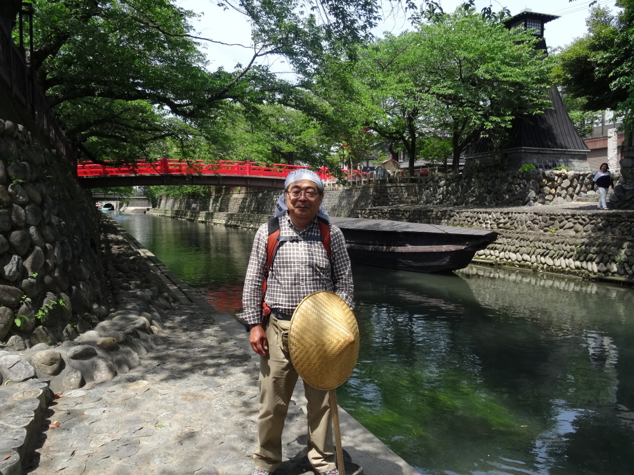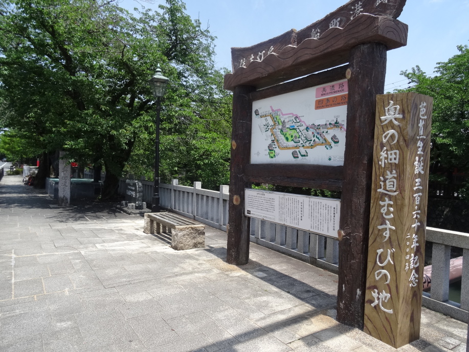 「おくのほそ道」最終地到着の日です。関ケ原に戻ってスタート、中山道を暫く進むと桃配山、家康の最初の陣地です。山内一豊陣跡を通り過ぎて垂井宿に入ると本龍寺に芭蕉の「作り木の庭をいさめるしぐれ哉」をはじめ美濃派ゆかりの俳人達の句碑を建てた作り木塚がありました。又、9年前に中山道を歩いた時に泊まった「亀丸屋旅館」が健在でした。当時80歳くらいのお婆さんが一人で切り盛りしていたので心配していましたが、後継者が出来たらしい、嬉しい事です。 垂井からは美濃路を進んで大垣に行きます。大垣の正覚寺に芭蕉の百カ日忌に建てられた最古の芭蕉塚がありました。12時に「奥の細道むすびの地」に到着。昨年3月27日に深川・採茶庵を出発して67日目、1,910qを歩いての到着です。記念撮影をしようと思っても人がいないので自撮りしか出来ません。奥の細道むすびの地記念館では、奥の細道を日光路、奥州路、出羽路、北陸路に区切ってグーグルアースを使った地図と映像で詳細に説明、これを見ながら今回の旅を回想しました。その後、ボランティアガイドの方と話をしていると、むすびの地の絶景ポイントに案内してくれて写真も撮ってくれました。 芭蕉は大垣に着いて2週間後に伊勢に向っているので、私もそれに倣うことにします。芭蕉は大垣から長島まで舟を利用しているので、私は電車を乗り継いで長島へ。長島の大智院は曽良が山中温泉で芭蕉と別れた後に訪れて休養をとった寺。芭蕉も伊勢に行く途中、ここで3泊しています。ここに寄った後、1100mを超える長い伊勢大橋で長良川・揖斐川を渡り桑名まで歩いて今日の予定は終了。 夜は10年前、東海道を歩いていた時に寄った「みくに」に行きましたが、看板はあるものの閉店の様子。代わりに入った「お勝」もいい店でした。ハマグリは無かったけど、大アサリの酒蒸しは絶品、三重の三重錦と瀧自慢で合わせました。 |