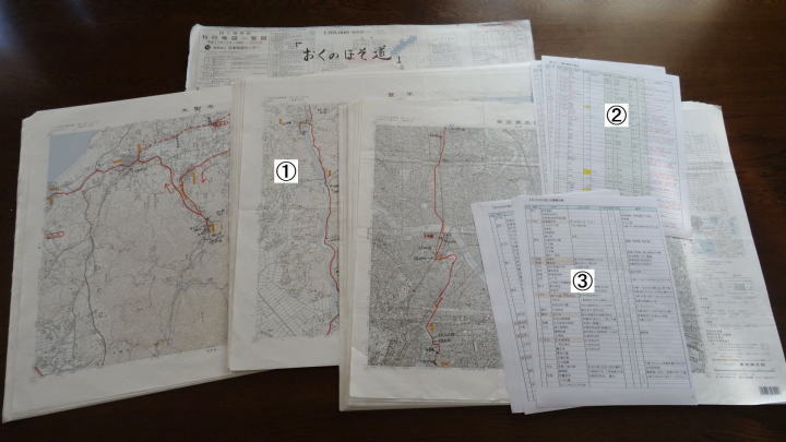 「おくのほそ道」を歩きます。 「おくのほそ道」は歌枕や西行の旅路を辿った紀行文学、元禄2年3月27日に江戸深川を出発して8月21日に大垣に到着するまで600里といわれる行程でした。更に9月6日には大垣を出発して伊勢神宮に向かっています。丁度、式年遷宮の年で僧侶の風体の芭蕉は遠くから伊勢神宮を参拝したとあります。そこで、私の「奥の細道」は伊勢神宮を終点とし、深川から伊勢神宮まで約2,100qを6〜7回に分けて歩くことにしました。 芭蕉の歩いた道を想定しながら五万分の一の地図にルートを書き込み、曾良に倣って名勝備忘録を作成し、深川・採茶庵から芭蕉の辿った道を進みます。 |