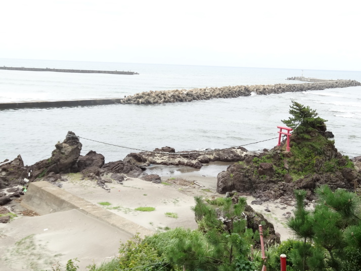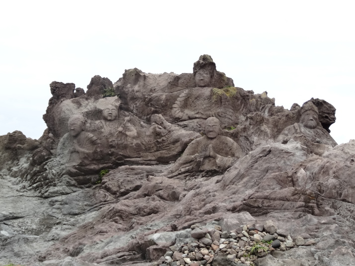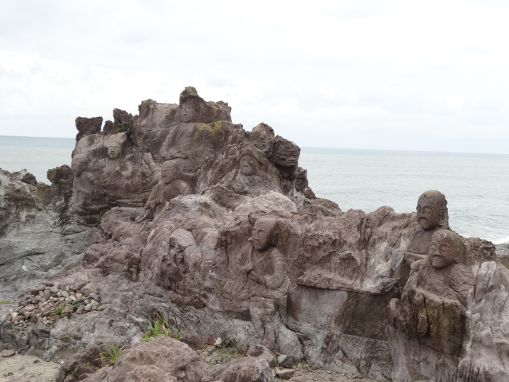 吹浦には芭蕉歌碑『あつみ山吹浦かけて夕すずみ』と十六羅漢岩があります。