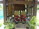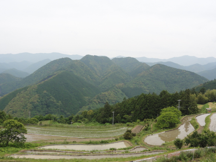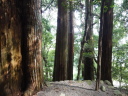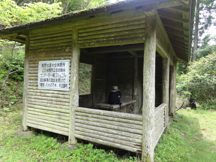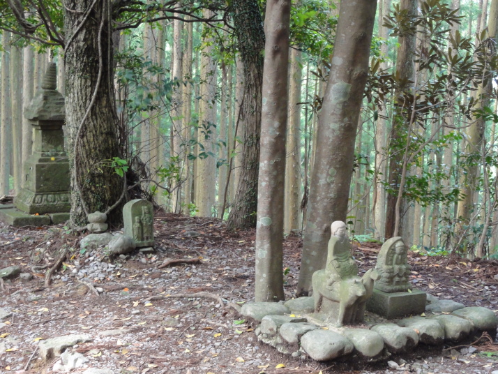 8時に田辺駅を出発、9時前に滝尻王子をスタートです。天気は晴れでちょっと安心。 ちょっと下って又、登ると飯盛山山頂(340.7m)の展望台に出ますが、大きな蜂がいて休憩が出来ません。針地蔵尊や夫婦地蔵を経て10時半に高原熊野神社に到着。高原霧の里休憩所や展望台があり、ここで暫く休憩です。旧旅籠通りの急な石畳を登ると山道に変わり、11時半に大門王子に着きました。ここから暫くは平坦な道が続きます。12時に十丈休憩所で昼食です、今日も田辺駅キオスクのお握り弁当。更に十丈王子を経て小判地蔵を過ぎ、最後の急な登りを行くと、今日の最高地点標高600mの上多和茶屋跡に到着しました。 13時30分に大坂本王子を通過し、14時に箸折峠(287m)の牛馬童子に着きました。「花山院が熊野詣の際この地で昼食をとった時、箸を忘れたことに気づいた随従の者が茅を折って花山院に渡した。花山院はその茅から血の様な赤い露がしたたり落ちるのを見て『これは血か、露か』と訊ねた。以来、熊野の山の人々はこの峠を箸折峠と呼び、はるか眼下に見える里を血か露(近露)と呼ぶようになった」とのこと。そして牛馬童子は花山院の旅姿とも言われています。14時20分に近露王子に到着。今日はここに泊まる予定にしていますが、早いのでもう少し先に進むことにしました。旅館の主にその旨を話すと、今日の終点で電話すれば迎えに行ってやると(ラッキー)。これで安心して進めます。 近露にある近野小学校の校庭は全面芝生。その前を通ってだらだらと坂を登っていくと、比曽原王子(455m)に到着、更に進んで15時35分に継桜王子(506m)に着きました。境内を護るように樹齢800年以上の杉の巨木群があります。野中の一方杉と呼ばれ、全ての枝が南の方角(那智山)を指しているというご神木です。その先に「とがの木茶屋」があり、更にその先には秀衡桜がありました。安部清明腰掛け石に座って中川王子を経て、16時半に小広王子(535m)に到着。本日はここまで、旅館の主に電話して迎えに来てもらいました。 今日の宿「月の家旅館」の客は、私と中辺路を歩いている夫婦連れの計3人。 |
