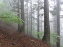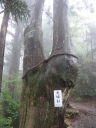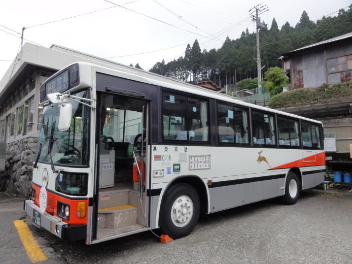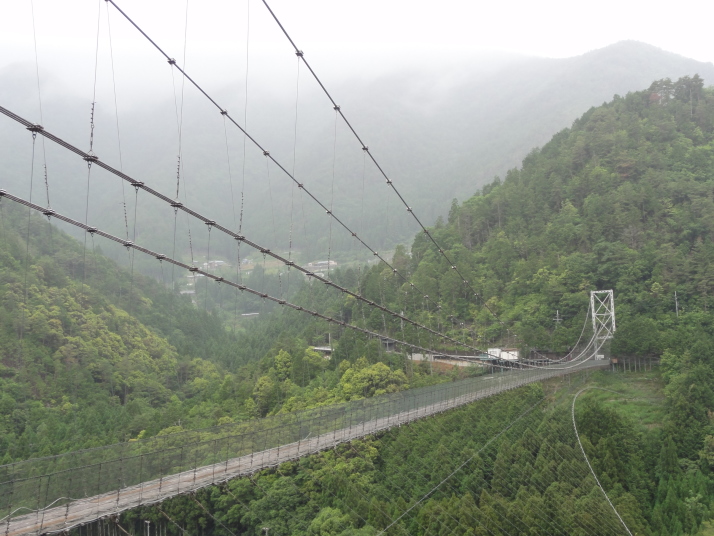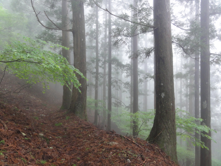 十津川村は奈良県最南部に位置し、日本一広い村(面積は奈良県の五分の一)、日本一長い路線バス(八木~新宮まで6時間半)、日本一長い谷瀬の吊橋(長さ297.7m、高さ54m)で知られるところ。又、南北朝時代の南朝ゆかりの地が多くあったり、幕末坂本龍馬暗殺では刺客が十津川郷士を名乗ったり、尊皇攘夷の過激派集団天誅組に多くの十津川郷士が参加したりと歴史の舞台にも多く顔を出しています。こんなに山深い所にどうしてと思いますが、古くは神武天皇の東征の際に吉野の山中を先導した「やたがらす」が祖先であるともいわれ、これが独特の勤皇精神を育んだのでしょうか。 ここからバス停のある折立まで下って行きます。先ずは玉置山展望台まで大峯奥駈道を歩きます。杉木立の歩き易い道が続きます。かつえ坂にある大峯奥駈道の石碑を経て11時に展望台に到着しますが雨で全く眺望が開けません。少し進んで折立に下りる道に入った途端、荒れた道に様変わりです。人が歩いた形跡が殆ど無く、荒れ放題といった感じ。特に先週の台風の影響か、木が多く倒れ、道がえぐれている箇所もあります。小枝が足に絡みついたり、滑ったりと大変です。朝のタクシーの運転手が「2ヶ月前、玉置山を登山していた夫婦が道に迷い、舗装道路に無理やり出ようとして滑落し、夫は頭を強く打って亡くなった。ドクターヘリも来て大変だった」と話していたが、その二の舞だけにはならないよう「ゆっくり・ゆっくり」「慎重・慎重」と声を出しながら進みます。何とか下が見える場所に来ましたが、その後も石だらけの急坂、最後まで気の抜けない道でした。やっとのことで車道に出ると、何と南都銀行十津川支店の脇。南都銀行恐るべしです。 折立から十津川村役場までバスで行って近くの公衆温泉「滝の湯」へ。ゆっくと温泉に入って生き返り、蕎麦とビールで遅めの昼食。更に十津川村民俗資料館を見学してから五條まで3時間弱のバス移動。途中、谷瀬の吊橋付近の休憩所で小休止。ここで八木から新宮行きの最終バスとすれ違いますが、乗客はゼロ。6時間半の路線バスで乗客ゼロは大変です。山と川の素晴らしい景色を見ながら、19時少し前に五條に到着しました。新宿行き夜行バスまで2時間ほどあるので時間調整しようと店を探しますが全くありません。駅員さんに聞いても牛丼屋は判るが居酒屋は無いよと。やっとのことでお好み焼き屋を見つけて時間を潰し、その後、初めての夜行バスに乗って帰宅の途につきました。 |