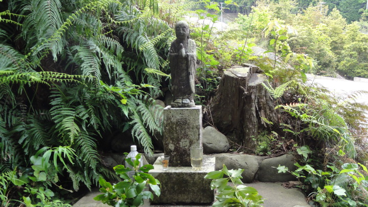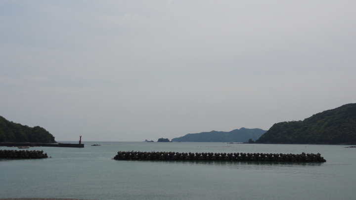 7時半前に出発、一般道を2時間半ほど歩きます。10時少し前に始神(ハジカミ)峠への山道を歩き始めました。昨日までと違って歩き易い道が続きます。10時40分に始神峠(147m)に到着、眼下には紀伊の松島と云われる島々が熊野灘に浮かんでいます。一旦、三浦の海に下りた後、三浦峠に向けて上ります。途中、復元された木橋(熊ケ谷橋)を渡って上っていきますが、三浦峠の頂上(113m)は判らないまま下って道瀬海岸に出てしまいました。 この辺りの案内表示は、伊勢から熊野へ向けて歩く人用になっていて、逆コースを歩く人には判り難くくなっています。本来は古里トンネルの上に道があるはずですが見当たりません。何度か行ったり来たりしても判らないので、仕方なく古里歩道トンネルを抜けると、トンネルを出た所に、土砂崩れで上の道は通れないのでトンネルを通るよう案内が出ていました。反対側にも是非案内表示を出してもらいたものです。 更に一石峠に向けて歩きますが、ここも入口が良く判りません。何度か行ったり来たりして道を見つけ一石峠(73m)を通過、お地蔵さんを見た後、一般道に入り、紀伊長島の街に入りました。 |