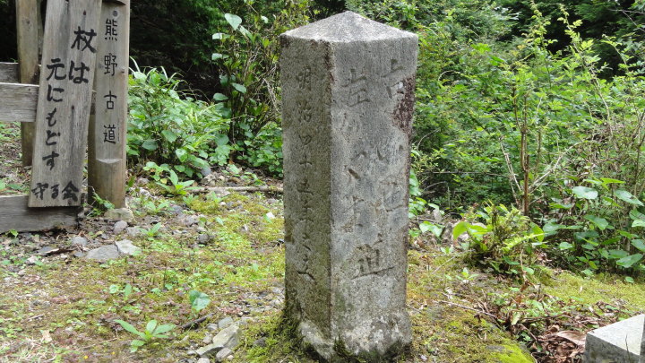 いよいよ熊野古道最終行程になりました。今回は紀伊長島から伊勢神宮まで80kmを歩き、最後は二見浦の夫婦岩で日の出を拝んで帰るつもりです。今日は前回と同じ電車で紀伊長島まで来て、12時半過ぎにスタート。357mのツヅラト峠を目指します。峠の麓まで地元の人と一緒に歩きましたが、その人はテニスのラケットを小さくしたようなものを持って歩いています。虫よけの道具だとか、これがあれば蜂ややぶ蚊は大丈夫ですね。だた、マムシが出るから注意!と脅されました。 九十九折から名前が付けられた通り、結構急な斜面もあり登り甲斐のある道でした。峠からの展望は素晴らしく、昔の旅人も伊勢から来て最初に見る熊野灘に感激したでしょう。天気が良ければ最高ですね。その後は大内山まで歩いて早目に投宿しました。 |