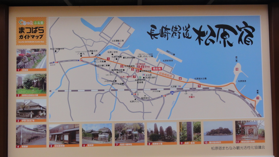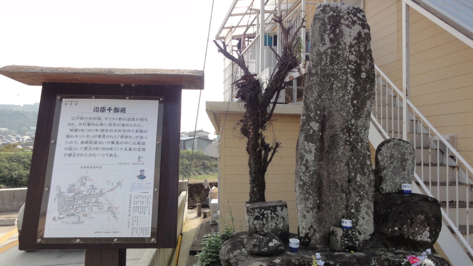 8時に出発、先ず豊玉姫神社(美肌の神様)に参拝です。旧道を歩いて8時半に古い社がある丹生神社へ、更に進むと丹生大明神の鳥居があります。暫く進んで国道に合流、坂を登っていくと俵坂関所跡の案内が。右の旧道を進むと「俵坂関所遺跡」碑と「従是北佐嘉領」領界石が立っています。説明に「江戸時代、幕府の管轄を関所、藩の管轄を口留番所と呼び、正しくは俵坂口留番所である」と書いてあります。俵坂峠を越えて長崎県東彼杵町に入ると標識が充実してきます。猪除けの柵を越えて10時半に鳥越一里塚を経ると、小学校の近くに大楠跡があります。長崎街道一といわれシーボルトが直径5.347mと測定したとあります。 長崎自動車道を越えたあたりに手作りの「長崎街道 風と共に歩く」の標識が、正にこの気分で歩いています。彼杵川を渡り、JR大村線を越えて、民家の脇に立つ川原千部塔を過ぎると彼杵神社です。ここに彼杵宿本陣跡(御茶屋跡)の標柱が立っていました。船着場跡や八坂神社を経て進むと本町万部塔があります。キリシタン弾圧で仏教徒への改宗が進められた時、その証として建てられて宝塔の一つです。更に進むと日本二十六聖人乗船場跡があります。慶長2年(1597)2月、長崎の西坂で処刑された日本初の殉教者たちはこの彼杵の浜から船で長崎に向かったといいます。12時に昼食、彼杵の名物鯨定食を食べました。13時40分に千綿駅を通過、右手に大村湾を望みながら進みます。14時過ぎに松原宿に到着、小さな宿場ですが、案内板などもしっかりしていて、中程に旧松屋旅館が公開されています。松屋旅館は1700年代後半に創業し、商人、町人、下級武士の宿泊に利用され、昭和40年代まで旅館業が営まれていたと。ここの持ち主が埼玉県入間市に移り、ここを松原宿活性化協議会が借り受けて「まちおこし」に使っているとのこと。話を伺った方の親戚が川越市に居るとか埼玉が近く感じられました。 郡川をわたってから国道34号を暫く歩き、皇天宮を過ぎると首塚跡があります。さらに胴塚跡、獄門所跡といったキリシタン殉教史跡が続きます。説明板には、天文18年(1549)日本にキリスト教が伝わり、大村では領主大村純忠が日本初のキリシタン大名となり領内の布教を強く支援したことから領民のほとんどがキリスト教に改宗した。しかし豊臣秀吉、続く徳川幕府のキリスト教の禁教政策によって大村藩でもキリスト教が禁止され仏教への改宗を厳しく迫られた。島原の乱から20年後の明暦3年(1657)、郡村を中心として領内に隠れてキリスト教の信仰を続けていた人達が発覚(郡崩れ)し、603人もの人々が捕まり406人が打ち首となった。信者の首は見せしめとして街道に面した獄門所に1ヵ月間晒された。当時はキリシタンの妖術で首と胴がつながって復活することを恐れたため、首と胴は別々の場所に埋められたと伝えられています。 17時に大村藩主大村家の菩提寺である本経寺を参拝しました。ここには初代藩主喜前(よしあき)(純忠の子) から11代藩主純顕(すみあき)までの歴代藩主とその一族の墓が立ち並んでいます。6mを超す巨大な墓塔が目を見張りますが、墓塔が巨大化するのは島原の乱以降。キリシタン大名であった大村家が仏教に深く帰依していることを示すため巨大にして長崎街道からも見えるようにしたと推測されています。夕暮れ時に一人でこういう所に居ると何だか不気味です。 |