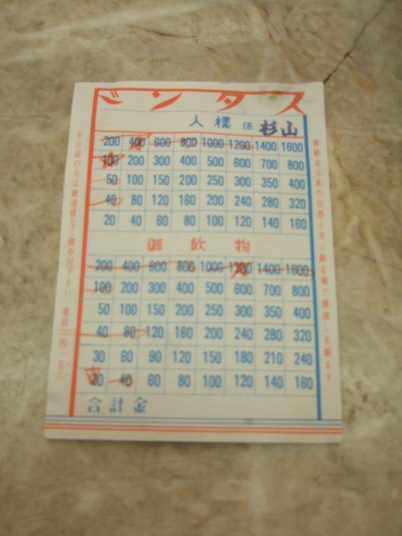 11月の連休に中山道歩きを開始しました。 夜は、新京極の「スタンド」で一杯。前から一度は行ってみたいと思っていた飲み屋で、昭和3年開業のレトロ漂う大衆食堂です。50年前のお姉さんたちが元気に接客してくれます。大理石の大きな細長いカウンターに相席で座り、思い思いに注文、勝手に飲み食いしています。伝票はただ数字が書いてあり、そこに赤鉛筆で印をつけるだけ。因みに、写真の伝票の合計金額は3,210円です。店の中には木製のレジスターも置かれ、良く見ると金額の単位が Yen(円)と Sen(銭)には驚きました。当然、今は使っていませんが、近くにそろばんがありました。一度はお薦めの飲み屋です。