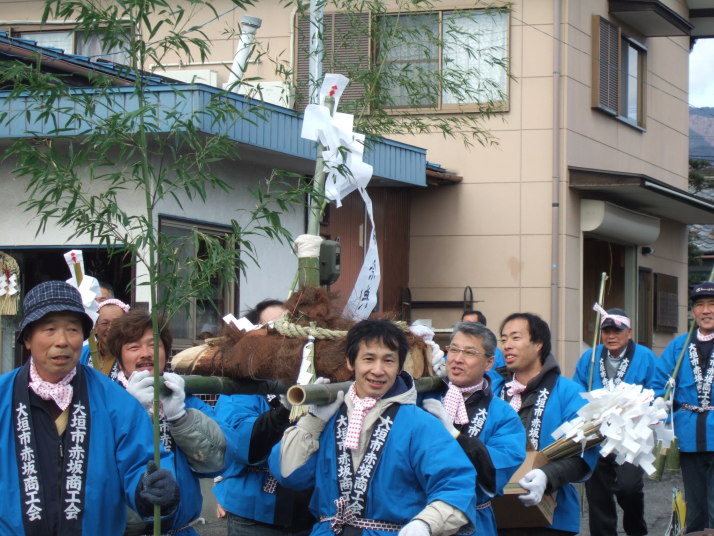 例によって6時過ぎに家を出て、品川駅で昼用のお握りを買い込み新幹線へ。名古屋経由で10時30分に垂井駅へ到着しました。前回お世話になった亀丸屋旅館の女将に挨拶をしてから赤坂宿を目指して出発です。青野の一里塚附近で太鼓を叩きながら家々を廻っている男衆に遭遇、聞くと「山ノ神」の祭りで男性のシンボルの御神体を担いで家々を訪問し、家内安全・商売繁盛を祈願する江戸時代から続くお祭りだそうです。 12時過ぎに西赤坂公園でお握りの昼食を摂り、現在でも旅館を営業している脇本陣跡を経て、皇女和宮が文久元年(1861年)10月25日に宿泊したという本陣跡に12時30分に到着しました。更に進んで赤坂港跡へ、背の高い常夜燈の前には赤坂港会館があり、管理人が詳しく当時の様子を説明してくれました。 14時30分に揖斐川を渡り、美江寺宿へ。田圃の中の中山道を進み、大きく立派な家が続く道を歩いて15時15分に本陣跡に着きました。更に歩を進め、16時20分に長良川手前の小さな河渡宿に到着しました。そろそろ廻りも暗くなりかけてきたので先を急ぎます。長良川を渡り、暗くなった道を進んで18時に岐阜駅近くのホテルに到着しました。加納宿の散策は明日にして、早速居酒屋探し。カウンター中心の小さな店を探して寒い中歩き回り、やっと良さそうな店「酒飯烹成」に入り、寒い中を7時間歩いて冷えきった体を熱燗で温めました。肴も美味しく、ちょっと高めだが満足のいく店でした。会社帰りの山が好きな客(槍ヶ岳に30回以上登ったとか)が、飲みながら休日出勤を愚痴っていましたが、「やるときゃやらなきゃな」と心の中で思いながら(口にも出したか)飲み続けました。 |