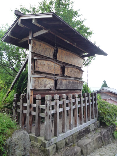 朝6時に散歩に出かけました。昨日は観光客で溢れていた街道も今朝は誰もいません。ゆっくり宿場を散策しました。妻籠寄りの高台に新しい展望台があります。平成の大合併で馬籠(山口村)が中津川市に合併されたことを記念して作られたようです。ここから恵那山の展望は素晴らしいものがありますが、馬籠(木曽路)が中津川(美濃路)に入ってしまうことには些か納得ができません。これも政治の問題ですかね。 8時半に宿を出発して、先ず藤村記念館を見学しました。記念館の横には木曽の五木(ヒノキ、コウヤマキ、アスビ、ネズコ、サワラ)が植えられています。隣は大黒屋。かつては酒造りをして年寄役を務めていましたが、現在はみやげ屋や飲食店となっています。大きな建物は、当時の裕福さを偲ばせてくれます。ここの当主が書き続けた「大黒屋日記」が「夜明け前」の構想を練る上で重要な役割を担ったことは良く知られています。 9時15分に妻籠を目指して歩き始めました。ここから馬籠峠までは登りが続きます。10時過ぎに標高801mの馬籠峠に到着しました。ここからまた山道となり、少しづつ下りながら進んでいきます。途中、樹齢300年のサワラの大樹や人懐っこい犬たちに会いながら、11時40分に妻籠宿本陣跡に着きました。妻籠宿は昭和43年頃から江戸時代の町並みを保存しようと運動を始め、昭和50年に国から保存地区に指定されています。ちょっと作り過ぎている感じもしないではないですが、当時の宿場の雰囲気を忠実に再現しているのは見事としか言いようがありません。 本陣を見学した後、観光案内所で馬籠〜妻籠を完歩した証明書をもらいました。これはヒノキで出来た証明書でいい香りがします。案内所で紹介された蕎麦屋で昼食を摂り、南木曽駅まで歩いて今回の旅を終了としました。14時過ぎの中央線に乗り、19時に帰宅、いつもよりは早い帰りとなりました。 |