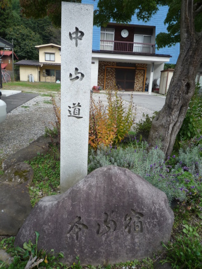 朝6時に起きて宿場を散策、流石に木曽路の朝は冷えます。 更に進んで、11時半に贄川宿に到着、贄川は本陣跡などは残っておらず、復元された贄川関所が唯一宿場の面影を残しています。贄川駅で妻と別れ、駅近くの関所亭で昼食。ここのテレビで初めて三浦和義がロスで自殺したことを知りました。 14時45分に洗馬宿に到着。本陣跡や脇本陣跡は標柱があるだけですが、近くに「邂逅(あふた)の清水」がありました。木曽義仲と家臣今井兼平がここで遭遇して兼平が義仲の馬の足を清水で洗って癒したことから洗馬という地名になったとのことです。洗馬を過ぎた辺りからぶどう畑が広がってきました。この一帯は桔梗が原のぶどう畑で中山道はこのぶどう畑の中を貫いています。甘い香りの中を歩いていくと、平出遺跡がありました。縄文時代から平安時代にかけての大集落跡で昭和25年から発掘調査が始まったとのこと。現在は平出遺跡公園として古代の農村を再現しています。 更に塩尻に向かいます。16時30分に塩尻宿に到着。本陣跡、脇本陣跡は石碑のみですが、隣の笑亀酒造の前にも塩尻陣屋跡の石碑があります。附近にはこの地の産土神である阿礼神社や国の重要文化財の堀内家住宅もありました。今回の旅はここまでとして、塩尻駅に戻り、中山道では久し振りに居酒屋で一杯やって帰宅しました。 |