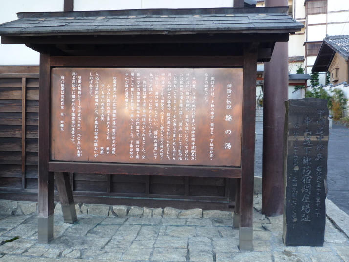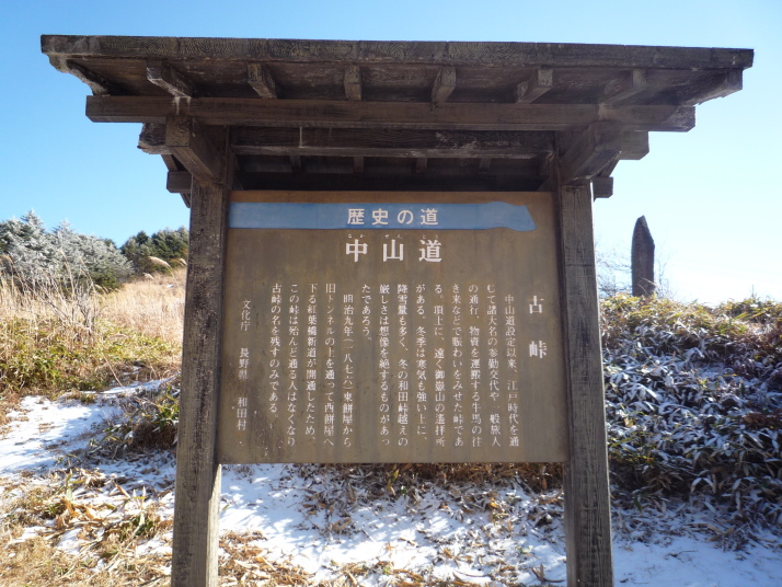 8時30分にいよいよ和田峠を目指して下社秋宮を出発です。下諏訪宿の標高760mから和田峠1600mまで標高差840mを登ります。昔から中山道最大の難所です。 ここからいよいよ登りが始まります。気温2度、昨日の雪が解けずに残っています。10時過ぎに「木落とし坂」に到着。諏訪大社の御柱祭は七年毎の申・寅年に行いますが、その祭りに使う樅の巨木を切り出し、上から落とす場所がこの坂で傾斜45度近い崖になっています。因みに次の御柱祭は平成22年寅年です。 ここを過ぎると歩道の無い国道142号線を1時間程緊張しながら歩きました。12時15分に西餅屋の一里塚を過ぎ、西餅屋茶屋跡で昼食のお握りを頬張りました。江戸時代は和田峠の西と東に茶屋が幾つもあり、餅や茶を供していたそうです。 いよいよ山道に入り、キツイ登りが延々と続きます。13時30分にやっと古峠(和田峠)に到着。頂上からは御嶽山や浅間山などが見渡せます。又、峠の木々には雪が残って白い花を咲かせていました。古峠から下りの道は良く整備されており、登り程キツイ傾斜もありません。丁度、箱根峠を越えた時のきつかった箱根東坂(江戸からの登り)と比較的楽な箱根西坂(京への下り)と同じです。 14時20分に東餅屋茶屋跡にあるドライブインで名物「力餅」を食べ、更に下って16時40分に和田宿本陣跡に到着。和田宿は古い建物が多く残されている宿場で、今日の宿「本亭旅館」は元庄屋で建物は1860年に建てられたとか。急な階段、襖で仕切られた部屋など情緒溢れる宿でした。 |