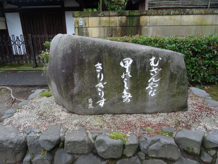 北陸新幹線で新高岡駅へ。ここから先ず埴生八幡へ向かいます。木曽義仲が戦勝祈願をしたという神社の境内には義仲の騎馬像がありました。そして倶利伽羅峠へ。寿永2年(1183)5月11日、平維盛(清盛の嫡男重盛の長男)を総大将とする7万の平家軍は倶利伽羅峠山中の猿ヶ馬場に本陣を構え、木曽義仲率いる源氏軍を待ち構えていた。一方、義仲は埴生八幡で戦勝祈願を行った後、夜が更けるのを待って夜半に400〜500頭の牛の角に松明を付け、4万騎の軍勢とともに平家の陣に突入、慌てた平家軍1万8千余騎は、源氏軍の奇襲に混乱し、何もできずに追い詰められ、人馬もろとも倶利伽羅峠の谷(地獄谷)に突き落とされた。こうして倶利伽羅峠の戦いは源氏の勝利に終わり、この戦術が「火牛の計」と言われています。 芭蕉は義経と義仲のファンで、おくのほそ道の前半では義経ゆかりの地を訪ね、後半では義仲ゆかりの地を訪ねています。そして自らの墓は生前からの要望で大津の義仲寺(木曽義仲の墓の横)に葬られています。「木曽殿と背中合わせの寒さかな」(又玄) つづいて金沢へ。芭蕉は俳人小杉一笑に会うのを最大の楽しみに金沢へ行きますが、前年に一笑が亡くなったことを知り大いに嘆き悲しみました。金沢では小杉一笑宅跡(現在はカラオケ屋)や、芭蕉が泊まった宮竹屋跡(芭蕉の辻)、一笑追悼の句会を開いた願念寺などを訪ねました。 |