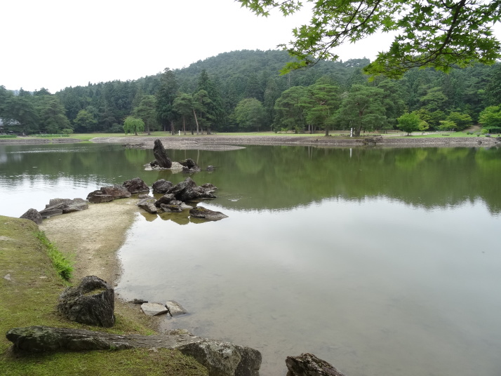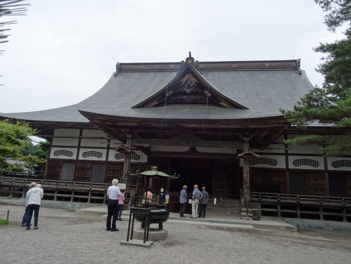 2日目は、早朝に住吉社、袖の渡りを見学、歌枕「袖の渡り」は東日本大震災で被災し荒地になっていました。日和山公園からも大震災で全てを失った石巻市街地が一望出来ます。二日間お世話になったバスの運転手さんは、住まいが仙台空港の近くで、東日本大震災の津波で家は跡形もなく流され、ご両親はじめ親戚の方も多く亡くされたそうです。朴訥とした語り口で淡々と話される姿に言葉も有りませんでした。悔しさや悲しみを秘めて毎日過ごされている方が如何に多いか、考えさせられました。更に「がんばろう!石巻」の看板のある所で黙祷をし、登米に向かいました。 登米大橋の北上川沿いに「芭蕉翁一宿之跡」碑があります。登米は元水沢県庁のあった所で落ち着いた町でした。更に北進して一ノ関で昼食。レストランの近くに芭蕉が2泊したという二夜庵跡の碑がありました。毛越寺を経て高館義経堂へ。高館から北上川のゆったりとした流れを眺めると『夏草や兵どもが夢の跡』が聞こえてきます。