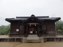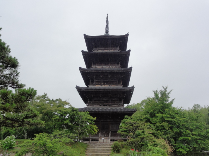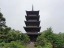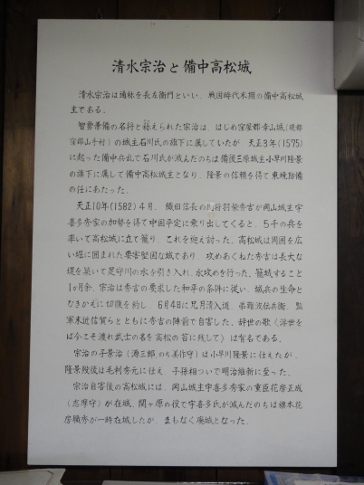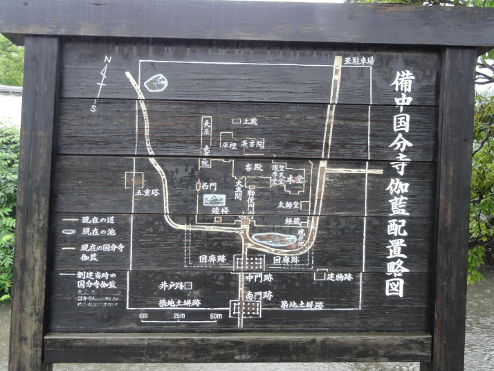 強い雨の中、7時半にホテルをスタートしました。 9時30分に吉備津彦神社に到着。備前の国の一宮として信仰を集める神社で、吉備津彦命を祀っています。荘厳とした社殿が雨に煙っていました。 11時45分に板倉宿本陣(鯉山コミュニティセンター)を通過し、近くのうどん屋で昼食を済ませた後は、街道を大きく離れて高松城祉を目指すことにします。12時40分に高松城祉に到着。高松城は天正10年(1582)の中国役の主戦場になった城跡で有名。城は沼沢地に臨む平城(沼城)で、石垣を築かず、土壇だけで築城された「土城」で、城の周辺には沼沢があり、これが天然の外堀をなしていたことが窺われます。確かに現地に行ってみると、平坦な田圃の中にあり、特に強い雨が降っていたので水攻めに遭えば一溜りもないと納得しました。(これは今だから言えることですが) 元の街道に戻って鯉喰神社を経て備中国分寺を目指します。相変わらず雨が降っていますが、時折激しくなり、歩道の無い国道では思わず立ち止まったり、近くの農家の納屋に避難して雨宿りしながら進みます。この近くには古墳も多くありますが寄り道せずに進みます。16時に備中国分寺に到着、ここは国分尼寺とともに天平13年(741)に聖武天皇の勅願によって建てられた官寺で、中世には廃寺になりましたが、江戸時代中期に日照山国分寺として再興されたといいます。大きな五重塔が聳えていました。 一日中雨の街道歩きでしたが、高松城祉の見学にはピッタリでした。倉敷まで電車で行って宿泊、美観地区の地味な飲み屋で一杯やって疲れを癒しました。飲み屋の壁には以前に来店した宍戸錠の落書きが残っていました。 |