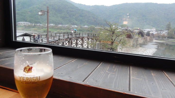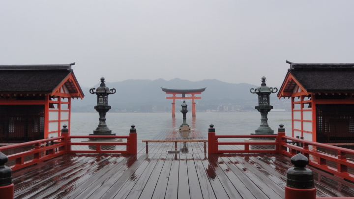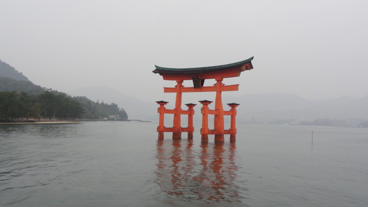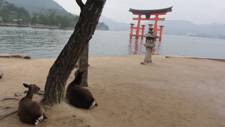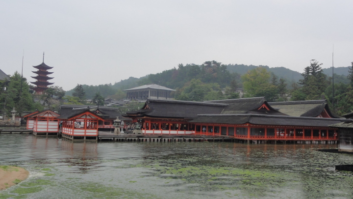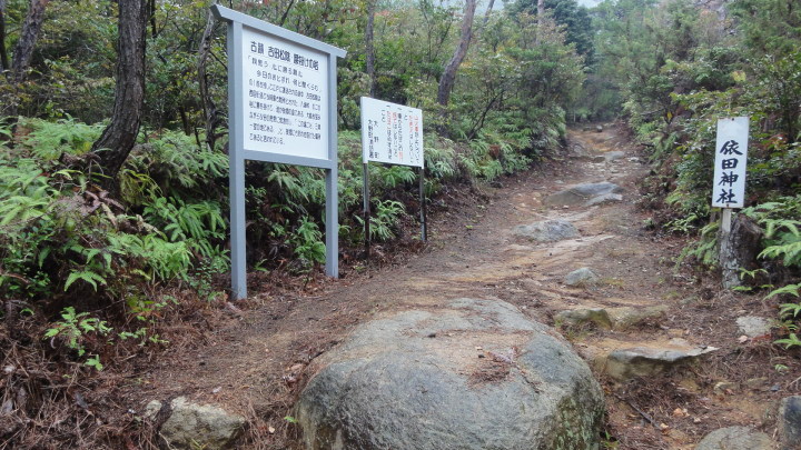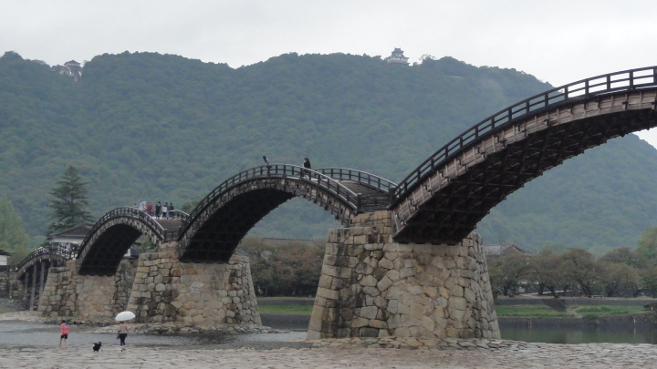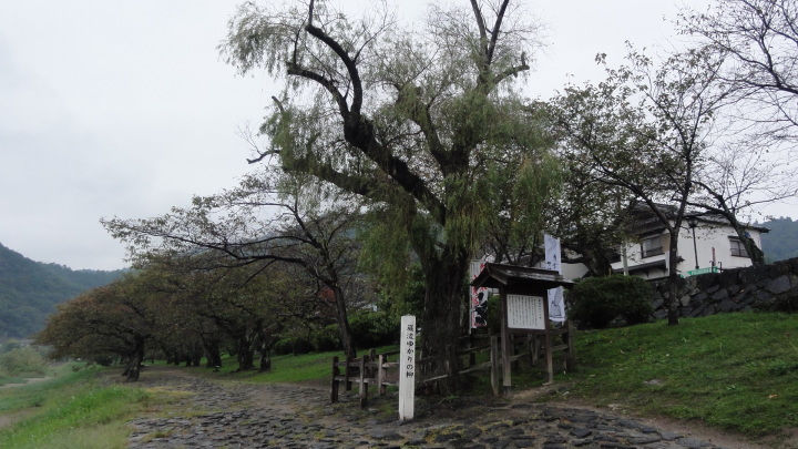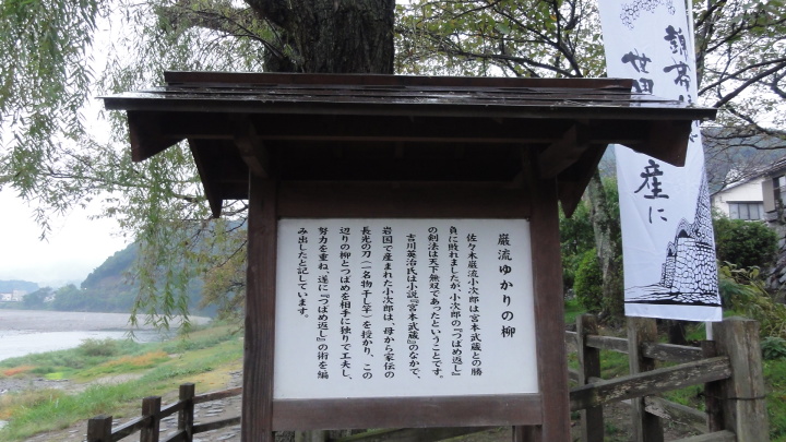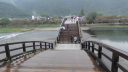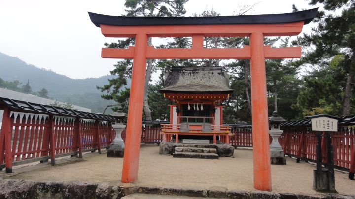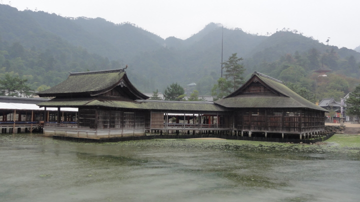 7時40分の船で宮島へ。雨の嚴島神社参拝となりましたが、これも又趣のあるものです。安産祈願のお守りを頂いてから、誰も行かない清盛神社へも行ってホテルに戻ります。宮島口から大野浦まで山陽本線で移動、10時に大野浦駅を出発しました。すぐに上りの道になり、暫く行くと古代山陽道の史跡「石畳」の案内がありましたが蜘蛛の巣が張っているし、雨も降っているのでここはパスしました。更に進むと残念社の標識があり、これに沿って行きます。「残念さん道」の青い標識を進みますが上り下りが激しく、かなりキツイ道です。この辺りは四十八坂と呼ばれるそうです。 10時40分に残念社着。慶応2年(1866)長州征伐の際、この四十八坂で丹後宮津藩士依田伴蔵が軍使として長州陣営に赴く途中、長州軍に戦闘員と間違われて狙撃されてしまった。伴蔵は「残念」と言って倒れた。長州軍は遺憾の意を表したが、村人は伴蔵の死を悼みその霊を祭っている。これが残念社であり、近くに依田神社もありました。又、依田神社の手前に吉田松陰腰かけ石があります。江戸に護送される途中、この岩に腰を掛けてはるか故郷の大島を望みながら、父母の恩愛に感激をし、「この場こそ三県一望の地」であると、故郷にも別れを告げた場所だと説明されていますが、現在では木が邪魔をして展望は開けていません。 11時半に玖波宿に入ります。高札場跡や本陣跡(現JA玖波)を見て、ずばり「駅前食堂」でお好み焼きの昼食。ここで一旦、山陽道と別れて大竹を経て岩国方面へ歩きます。 13時35分に大竹駅に到着、その後、K垣氏が育ったM化学の社宅、小学校を経由してM化学の工場を通過して岩国駅へ。16時前に早目のホテルチェックイン。その後はバスで錦帯橋に行き、雨に煙る岩国城を見ながら橋を渡りました。 |