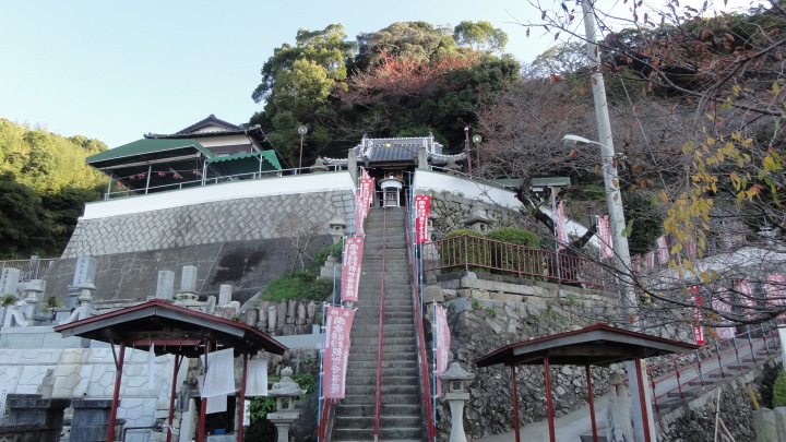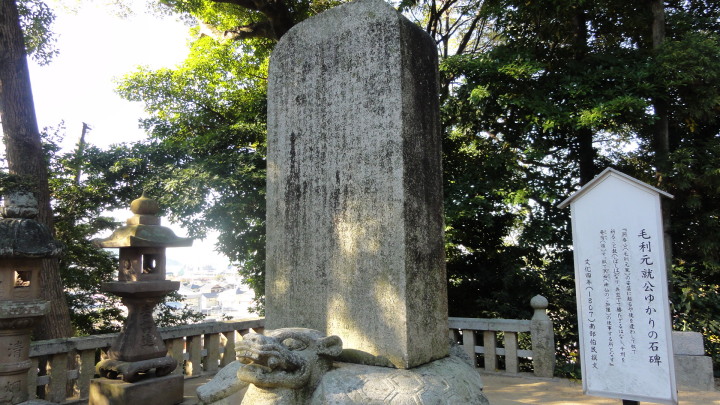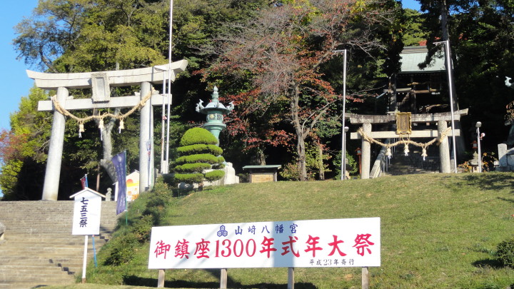 7時半にホテルを出発、自転車通学の高校生とすれ違いながら進み、8時半に川崎観音堂に到着、ここで安産祈願。更に進んで富田宿に入り、9時に山崎八幡宮に到着。ここも和銅2年(709)豊前国宇佐八幡宮の分霊を祀ったことに始まる古い神社。境内には毛利元就ゆかりの石碑もあります。お参りをすると巫女さんから「よくお参り下さいました」と記念にタオルを貰いました。こんな経験は初めて、ちょっと得した気分。