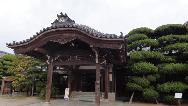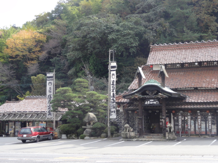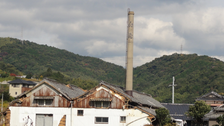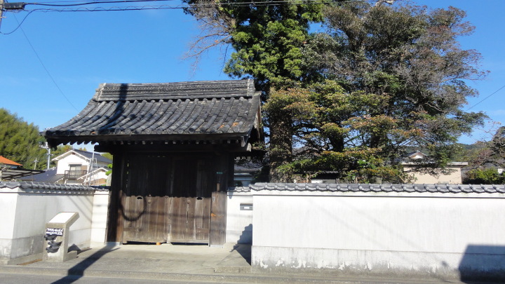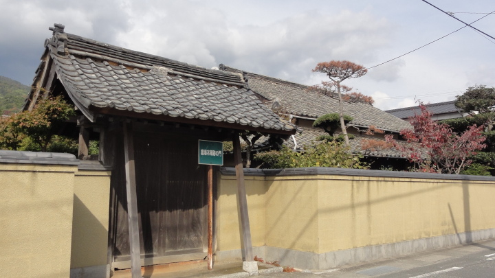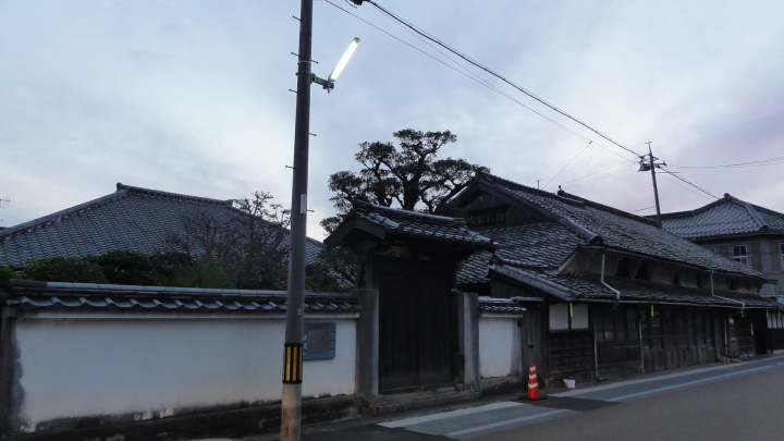 その後は夜市川沿いの土手道を進み、更に細い田圃道を進んで11時20分に船山神社に到着。建保4年(1216)流行病を治めるため京都の祗園社の分霊を祀ったとあります。国道2号線と合流した後直ぐに旧道に入り、国道と並行するように椿峠に向けて登ります。椿峠頂上で一旦国道と合流、ここには、庄屋山右衛門、天野屋利兵衛という時代がかった名前の食堂がありますが、どうも天野屋は営業していない様子。信号のない国道2号線を必死の思いで横断して反対側の旧道に入り前を進みます。12時半頃、白菊を造っていた酒蔵跡を経て12時50分に富海宿本陣跡の清水家へ。当時の遺構は門だけが残っています。