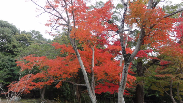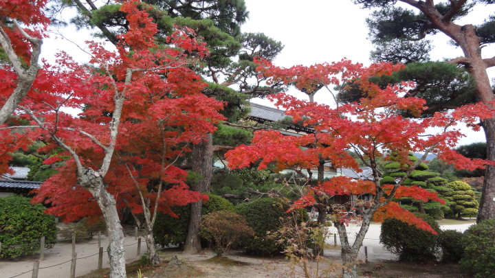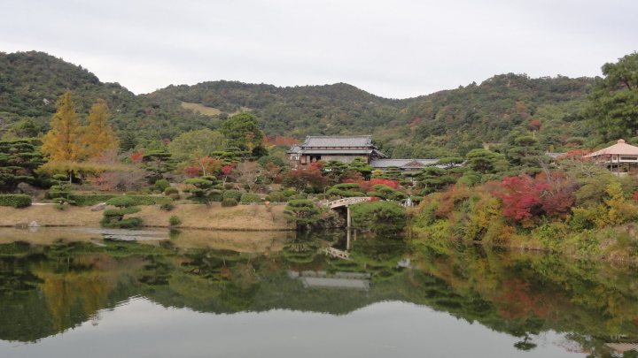 15時30分に毛利氏庭園、毛利博物館に到着。先ず、毛利邸・毛利博物館を見学しました。毛利邸は大正5年完成で、中には大正天皇皇后、昭和天皇皇后がお泊りになった主人居間(宝の間)もあります。博物館は雪舟の「四季山水図」ほか国宝級の美術工芸品、毛利家の歴史資料が公開されていました。毛利氏庭園は丁度紅葉が真っ盛りでゆったりとした時間を過ごしました。