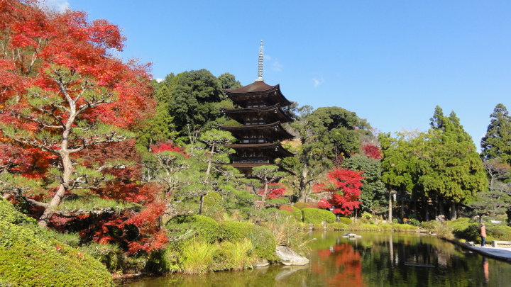 今日は山陽道を離れて山口の散策です。紅葉の中、大内文化の一端を感じる街歩きをしました。 道を戻って山口大神宮へ。ここは、永正17年(1520)に大内義興が朝廷に奏聞して勅許を得、伊勢皇太神宮のご分霊を勧請した神社ということ。外宮・内宮があり、伊勢と同様に素木神明造りで御神殿の造り替え遷宮をしている。最近では平成12年に式年遷宮をしているが、正にミニ伊勢神宮といったところ。更に藩庁門、山口県旧県庁、県会議事堂を経て毛利元就の菩提寺 洞春寺へ。後ろの香山公園には毛利家墓所がありました。 そして瑠璃光寺へ。昼間の五重塔は紅葉に映え、昨日とは違った美しさでした。近くの蕎麦屋で昼食後、八坂神社、今八幡宮を経て、大内館跡の龍福寺へ。参道や山門の紅葉が綺麗でした。 |